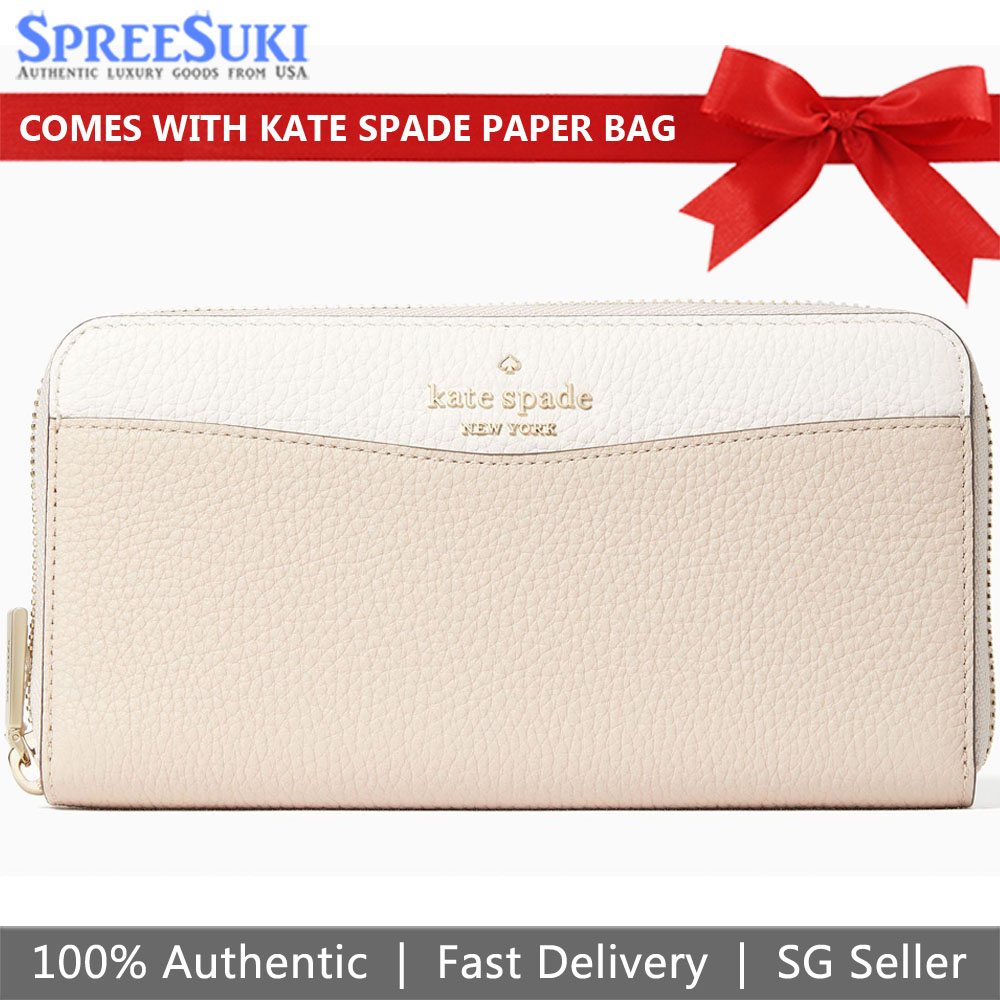 Kate Spade Wallet In Gift Box Long Wallet Large Continental Wallet Beige Nude Off White # WLR00402