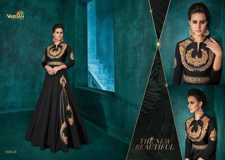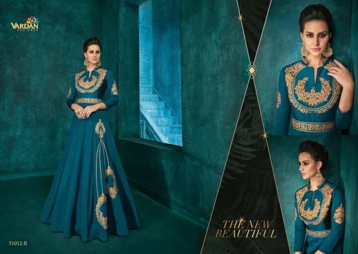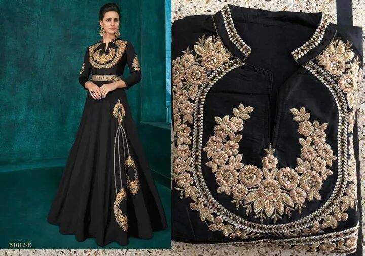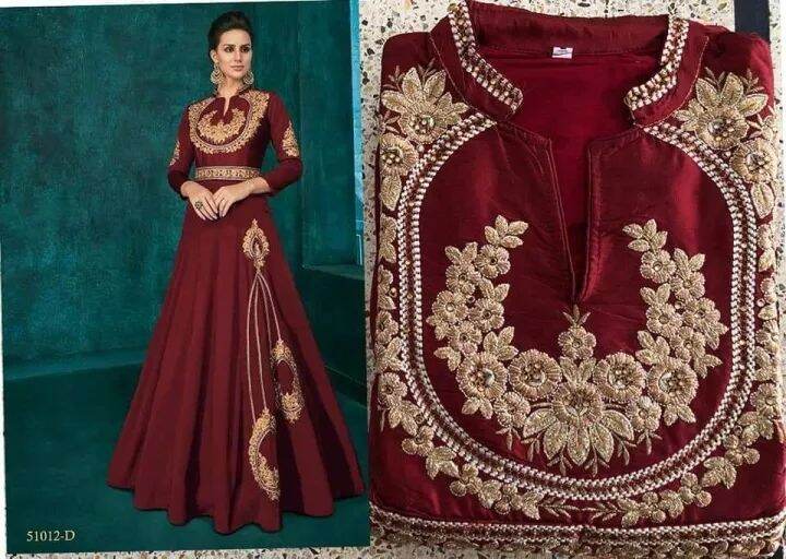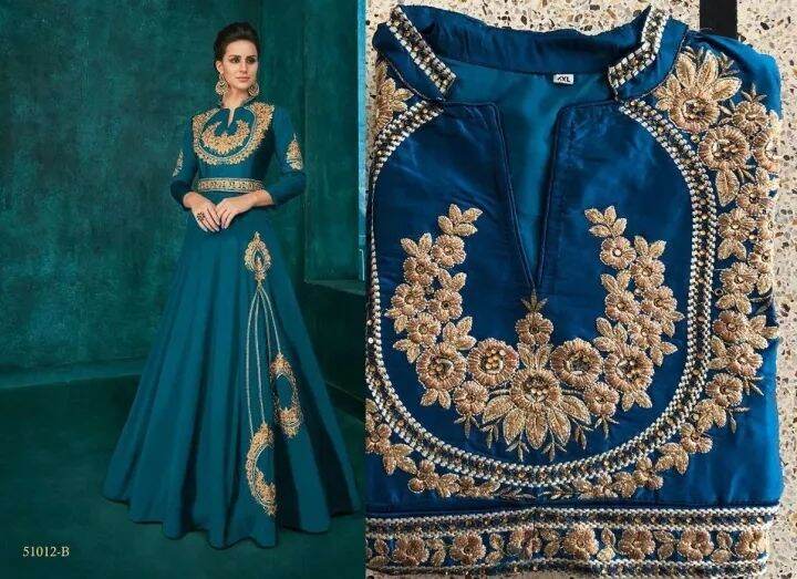 Partywear Silk Anarkali Indo Western Dress Full Gown Embroidery work 3/4th sleeve with waist belt design