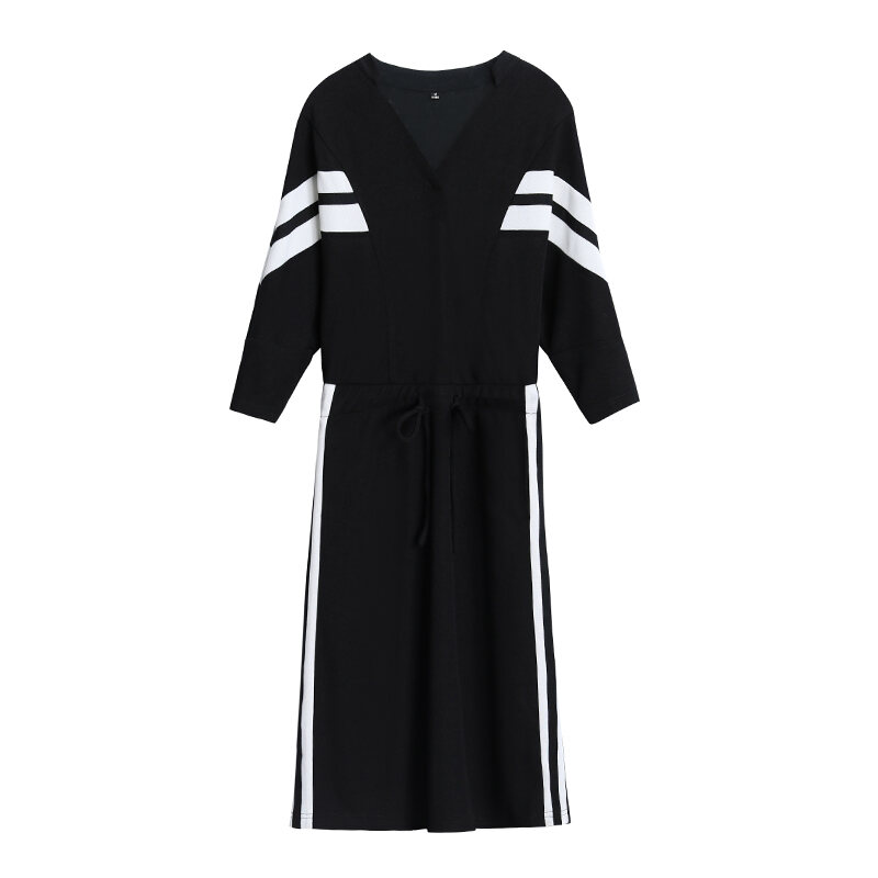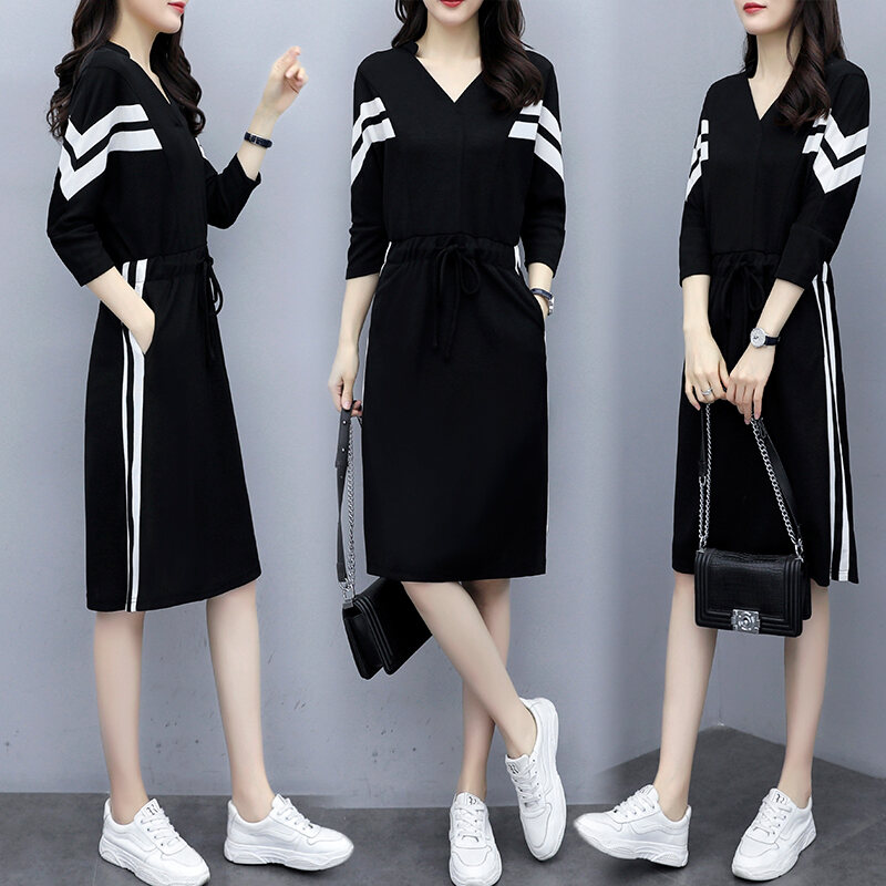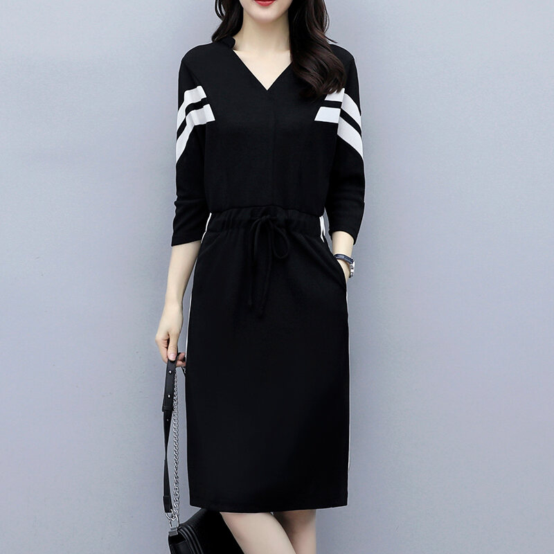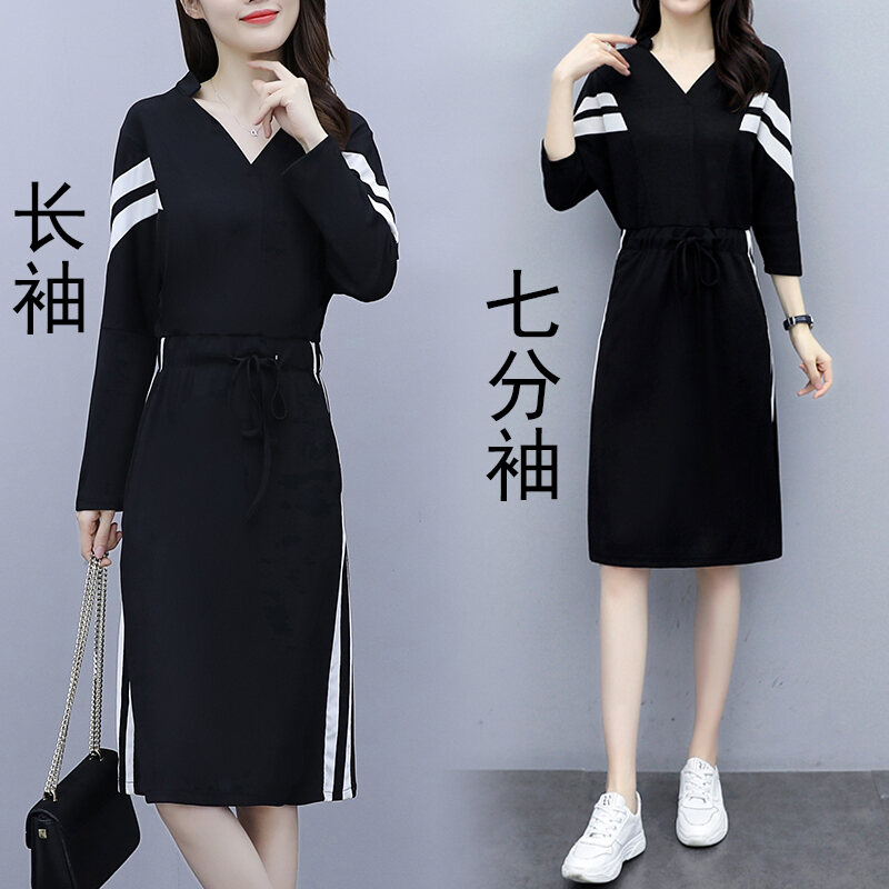 Black Dress 2021 New Spring and Autumn Waist Slimming Elegant V-neck French High Waist Midi Dress for Women