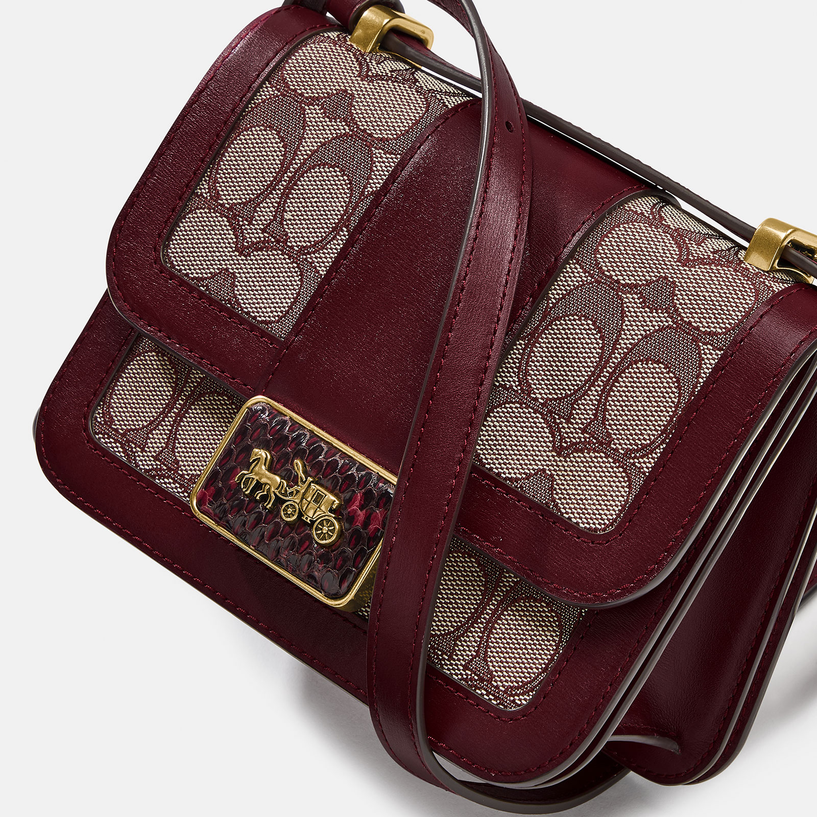 COACH WOMENS ALIE SHOULDER BAG 18 IN SIGNATURE JACQUARD WITH SNAKESKIN DETAIL