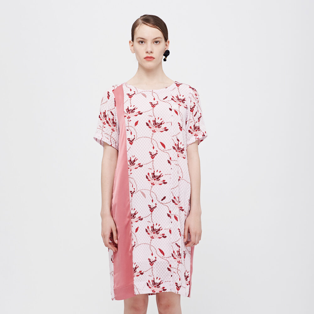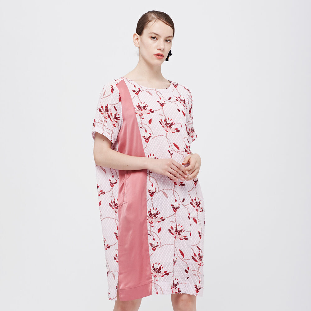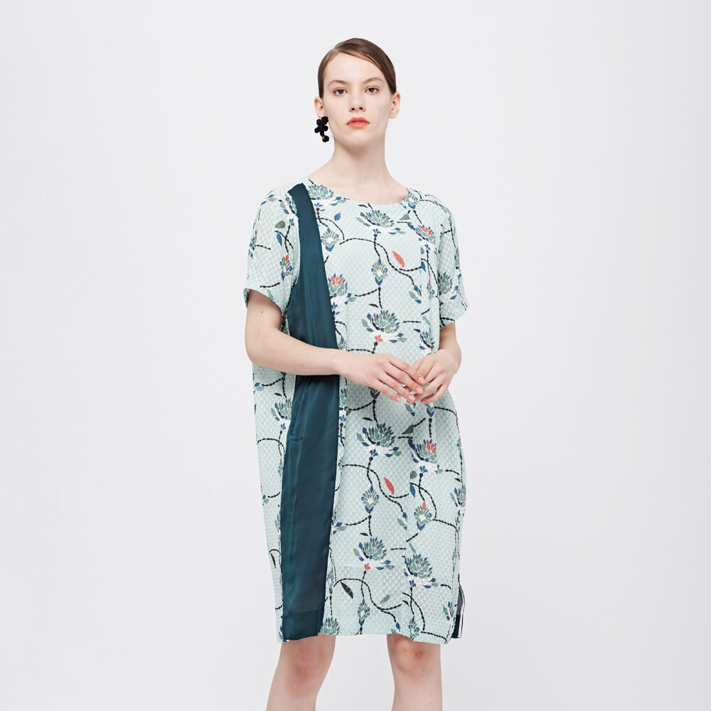 DeCoster Summer New Checked Cloth Bottom Printed Plain round Neck Loose Dress Temperament Midi Dress