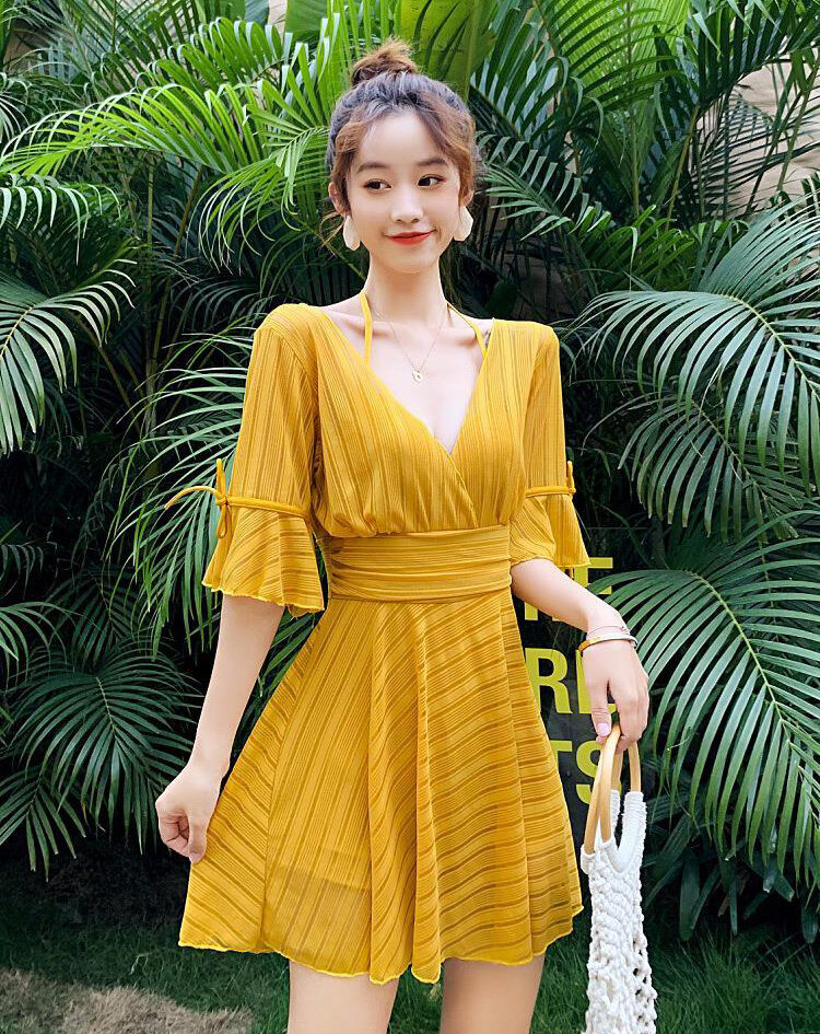 Swimwear Bathing Suit Women's Skirt Swimwear Beachwear One-piece Skirt Boxer Belly Covering Slimming Push Up Dress Swimsuit