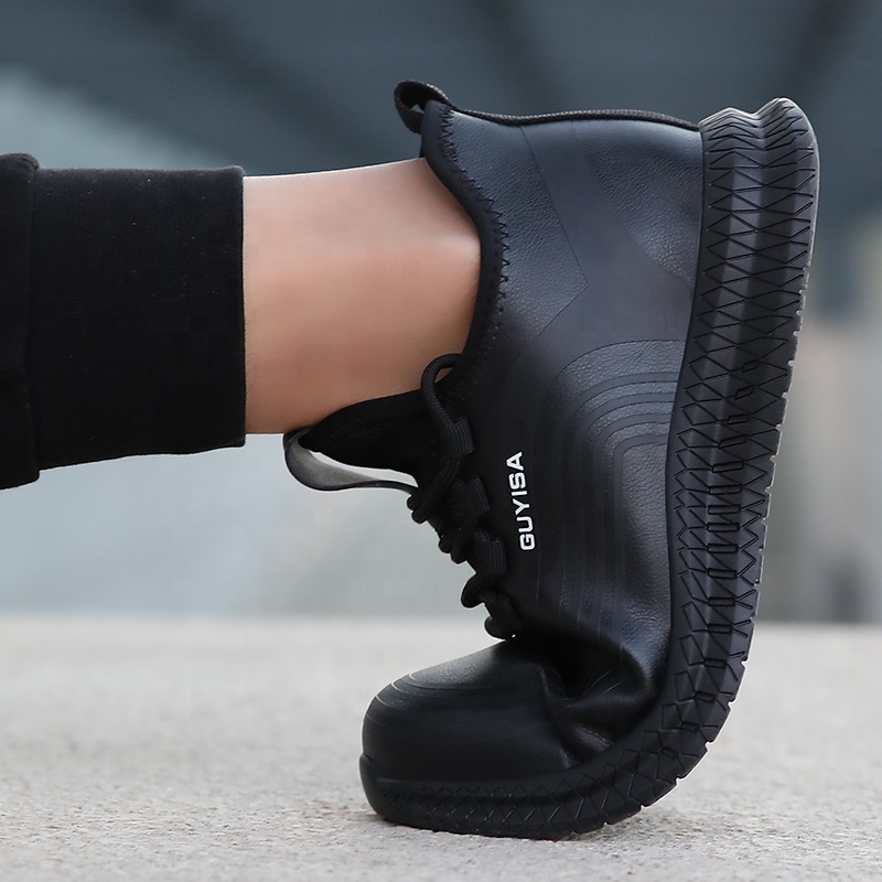 Guyisa Brand 2020 Fashion Black Anti Slip Waterproof Leather Steel Toe Safety Shoes For Men Heavy Industry