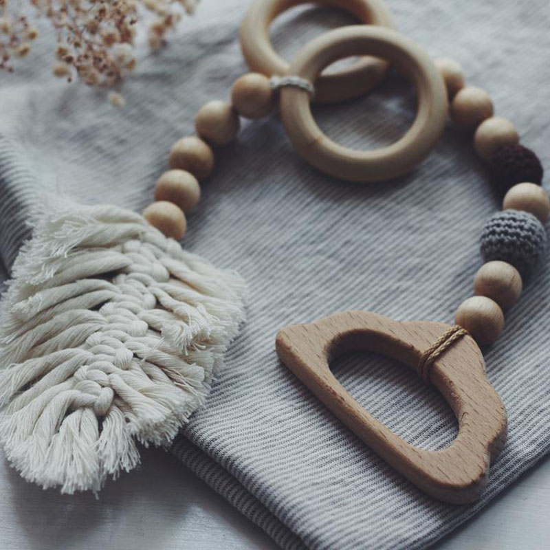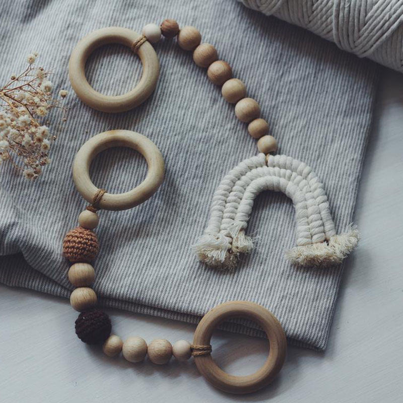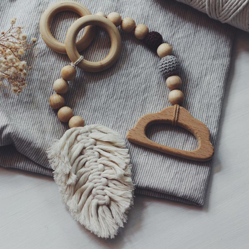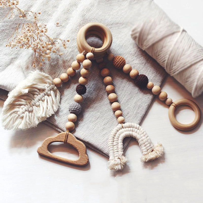 Wholesales Macrame Leaf Rainbow Wooden Baby Teething Activity Play Gym Toy 4 Pcs/set