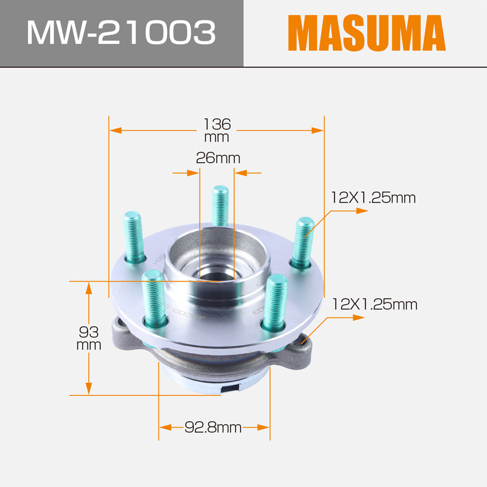 Masuma hubs are manufactured to exact factory OEM specifications, making them easy to replace worn original parts. The service life of bearings in Masuma hubs is comparable to that of the original ones and significantly exceeds the service life of the "contract" ones. parts that are often installed by car owners. The guarantee for the hub assemblies is 12 months. Wherever you bought or installed a part, within a year you have the right to return it by simply providing him with a receipt or other document confirming the purchase date and price. Even if you are not a certified auto mechanic and installed the part yourself in your garage, just keep your purchase receipt and, if a problem arises, you can always return the part. Masuma is a global brand of auto parts, components and consumables. The main specialization of the brand: resource parts for post-warranty service of Japanese cars. The company's strategy is to offer consumers the best ratio of reliability and cost of spare parts.