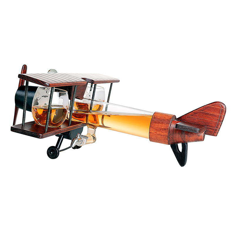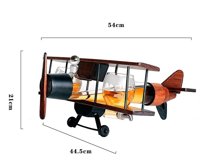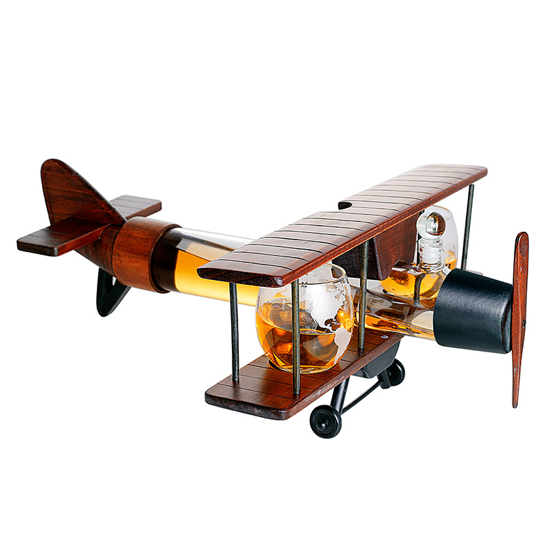 2021 New Design Hotselling Airplane Shaped Glass Bottle With 2 Globe Cups Whiskey Decanter For Liquor Bourbon Vodka Rum Tequila