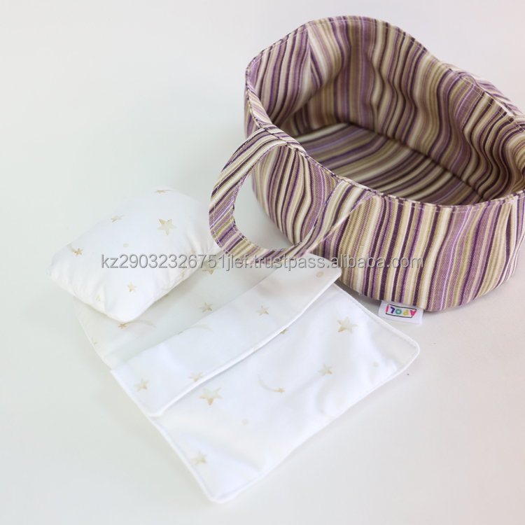 The carrying bag contains a set of bed linen (foam rubber mattress, thick blanket, soft pillow).