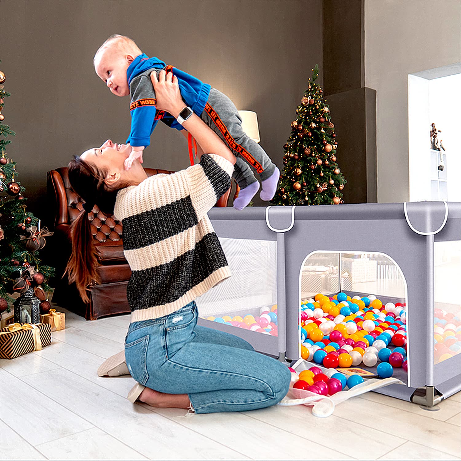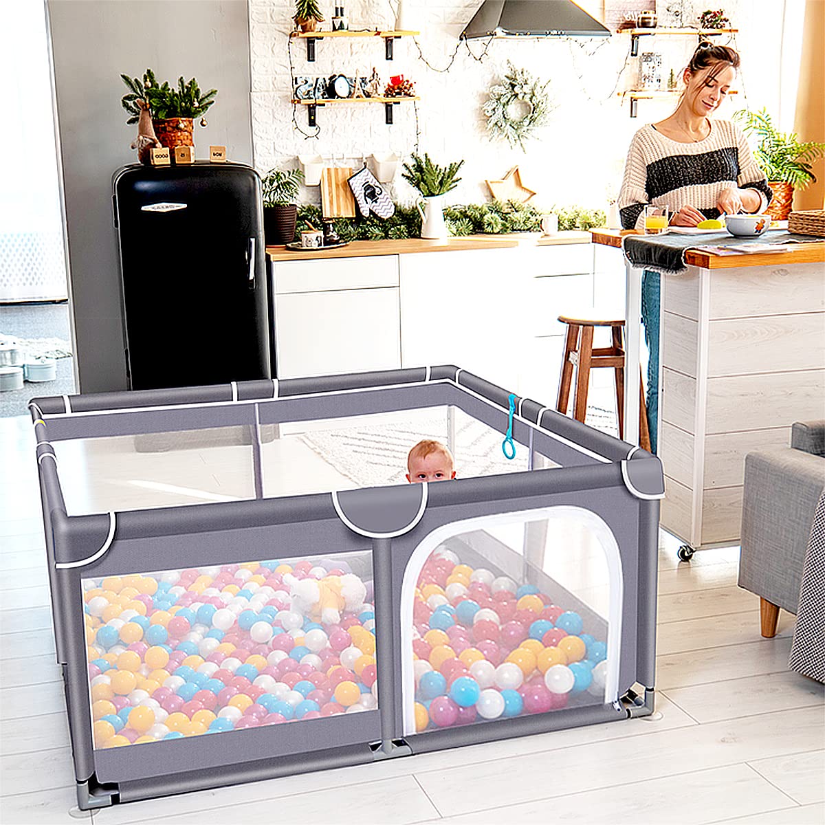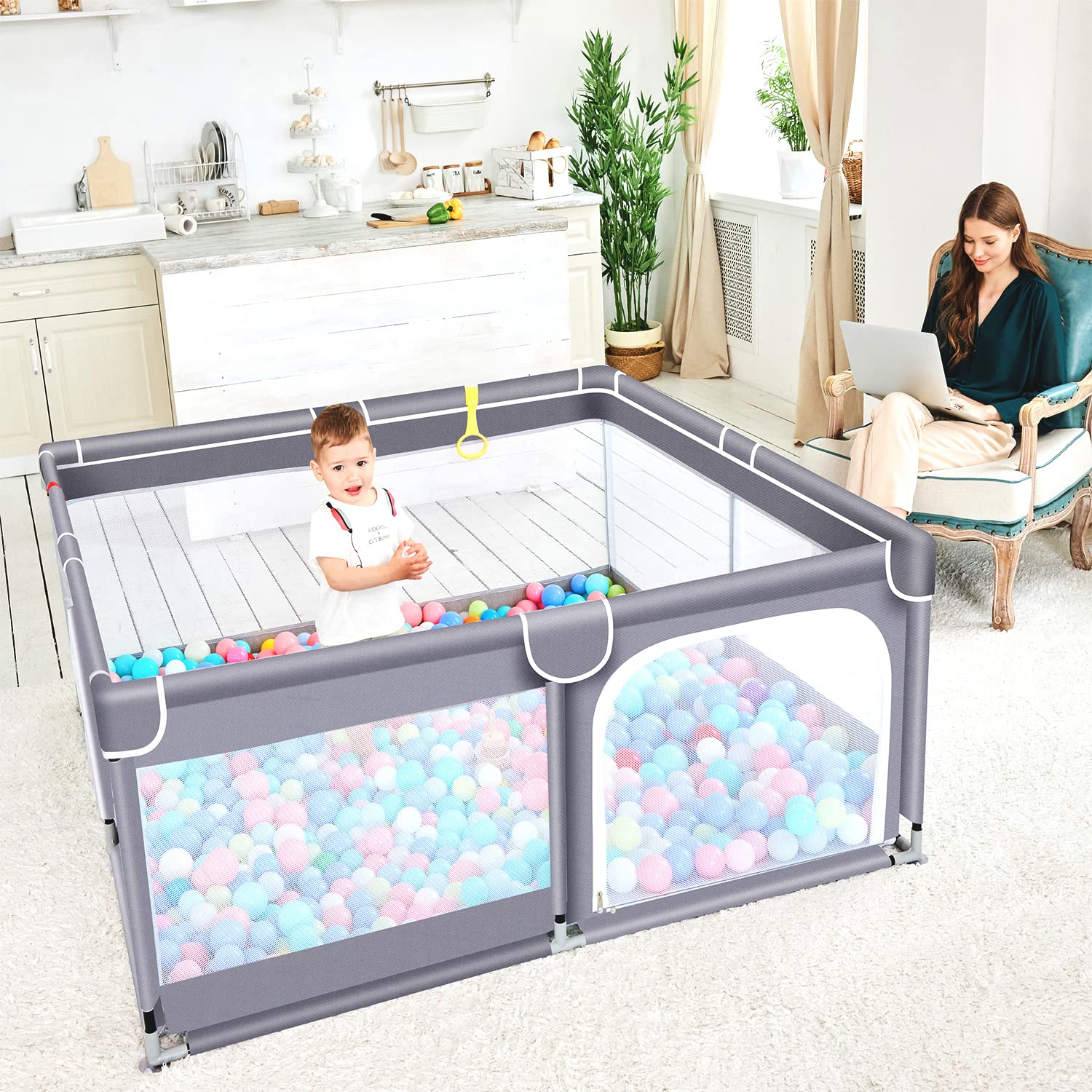 • Free Parent's hands: With the help of our Large baby playpen, turns it into a great safe playgrounds for babies! Help kids explore the world of perception, play and learn to move in their own, and keep it away from being lost or exposing to hazard areas as well. Meanwhile, the parents can free their hands to do their own things.