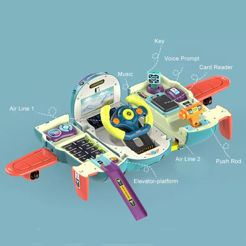 Popular Design Children's Deformation Pretend Driving Simulation Steering Wheel Air Plane Multifunctional Plastic Plane Toy