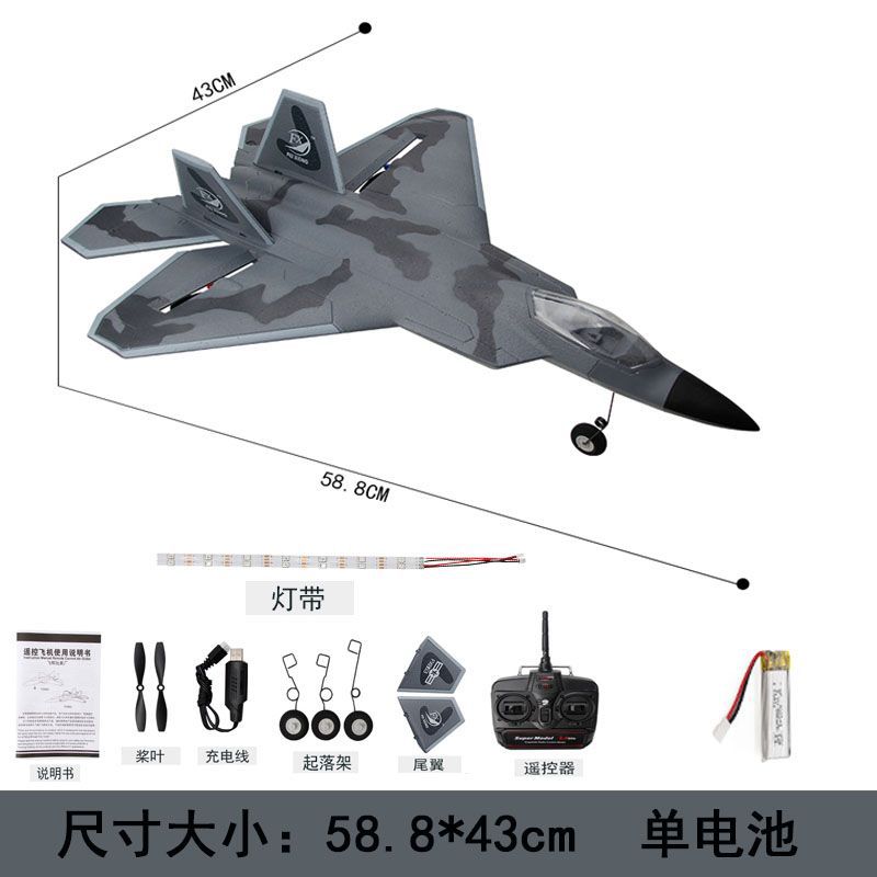 1. According to the same scale reduction of F22 fighter jets, high image fidelity, four-channel design, motor differential control the aircraft to turn left and right, , and control the throttle of the aircraft with the left hand; 2. EPP material, very resistant to impact, flying weight around 300g; 3. Back-push dual-engine power, customized version of brand-name motors, More motivated; 4. Built-in gyroscope flight self-stabilization system, flying more easily; 5. USB dedicated charging cable with protective board, safe and stable; 6. The fighter is fully assembled mode, and it can fly immediately; 7. The operation is simple, and beginners can easily master it. | ||||||