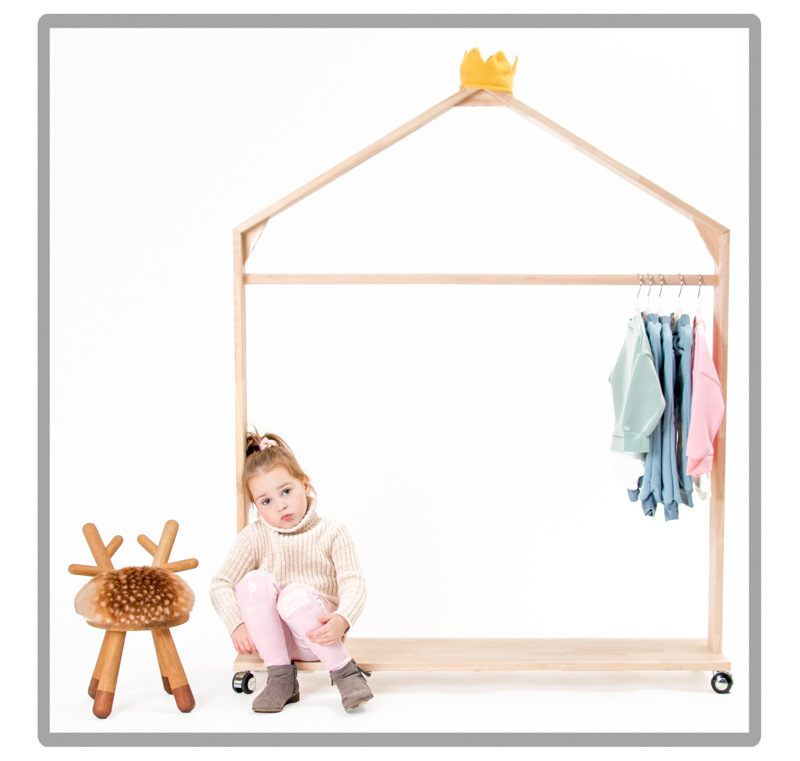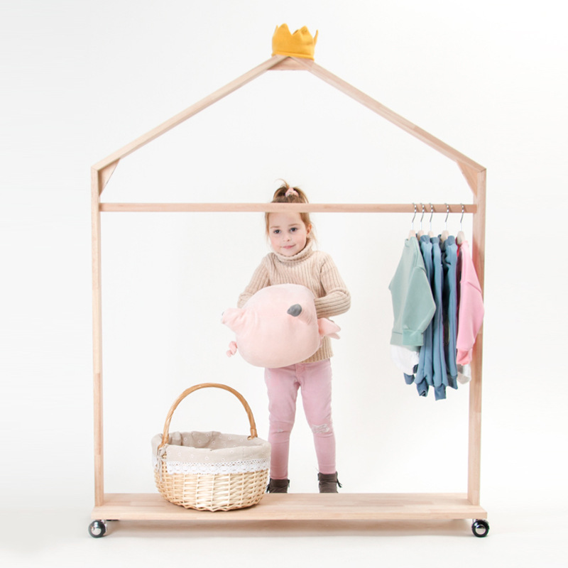 Kids Wooden Clothing Rack Dress Up Child Garment Clothes Rack Storage Display Wardrobe For Toddler