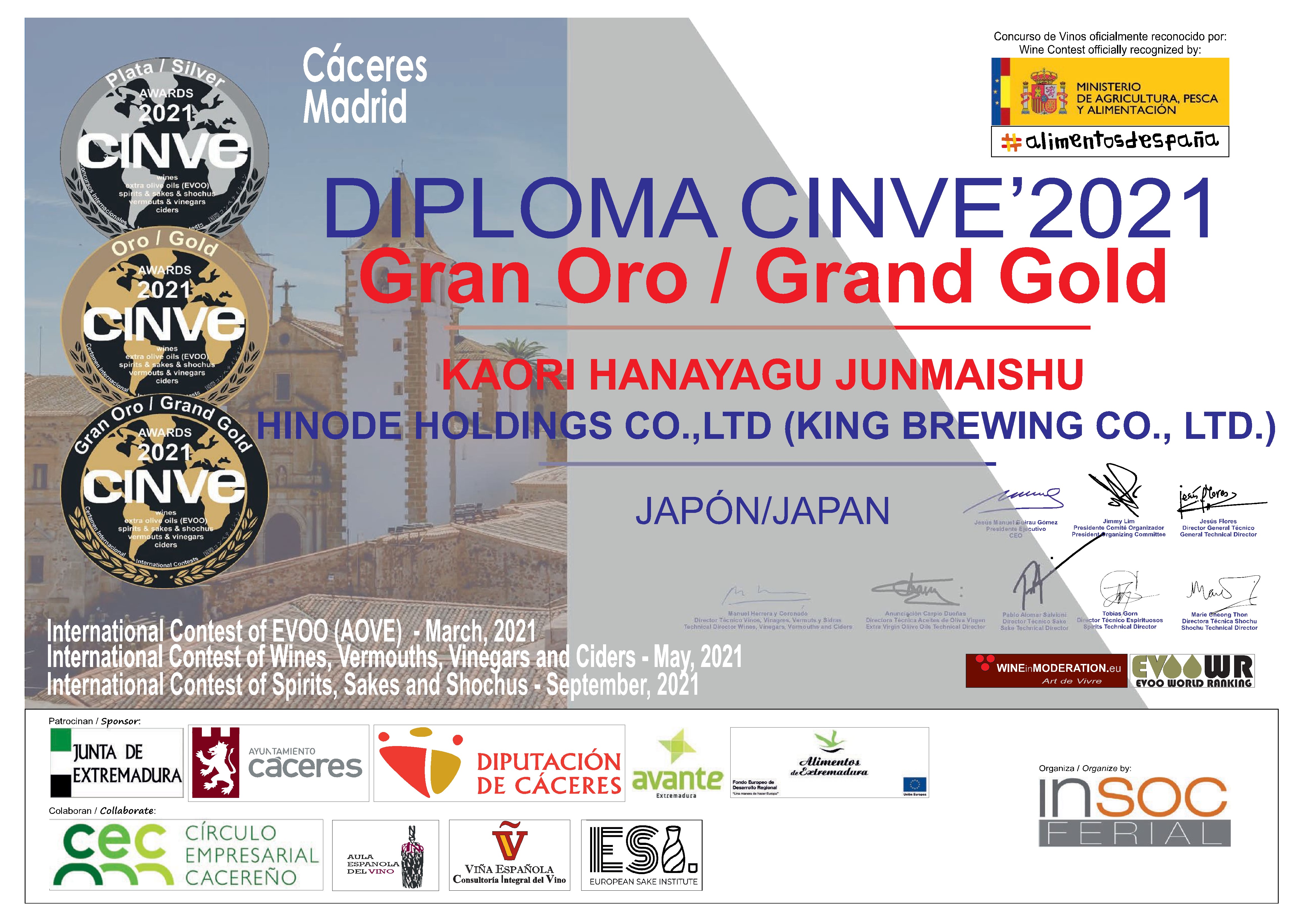 "Kaori Hanayagu Junmaishu" is made with wine yeast and has a sweet and sour taste, making it a especial match for Japanese and Western food as well. It won the highest gold medal in the sake category at CINVE in Spain for both 2020 and 2021. In Korean market, it is one of the most famous sake made in Japan.