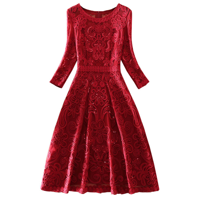 European And American Famous Wedding Mom Wedding Banquet Mother-In-Law High-End Temperament Formal Dress Large Size Women 'S Dress Mid-Length Slimming