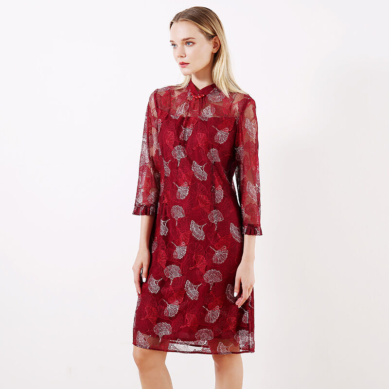 Zormei Early Spring New Elegant Elegant Lace Lace Lace Collar Retro Mid-Sleeve Midi Dress E91ll24