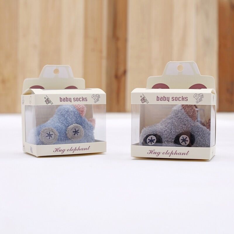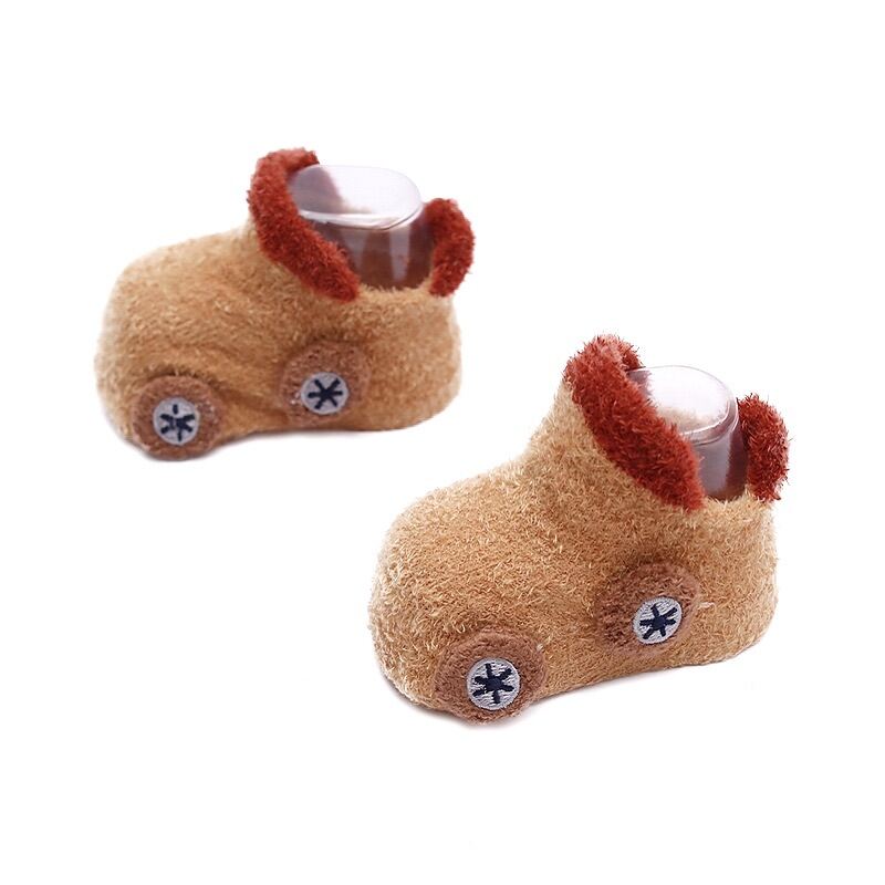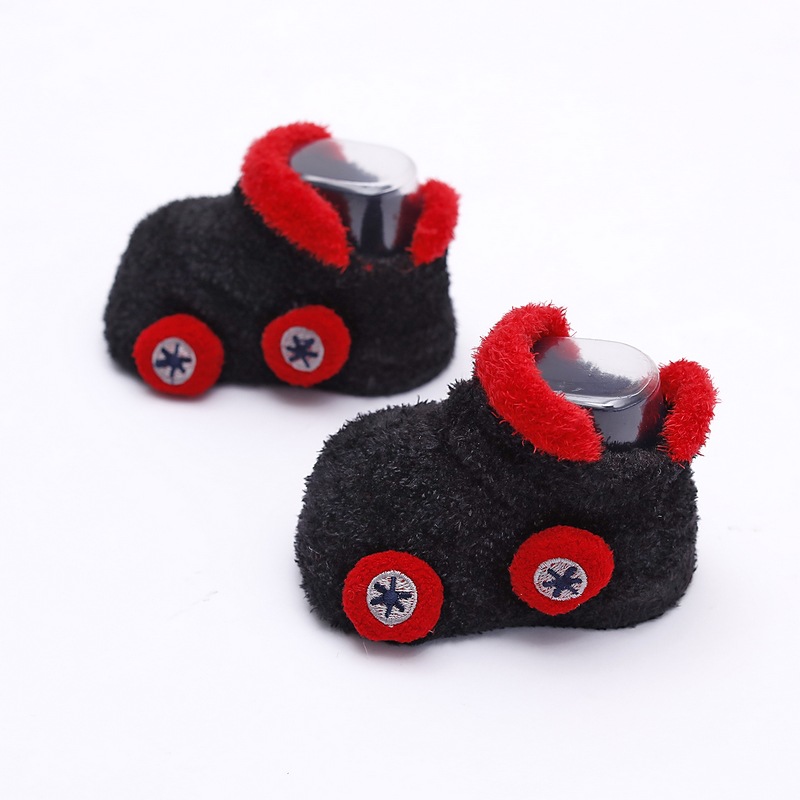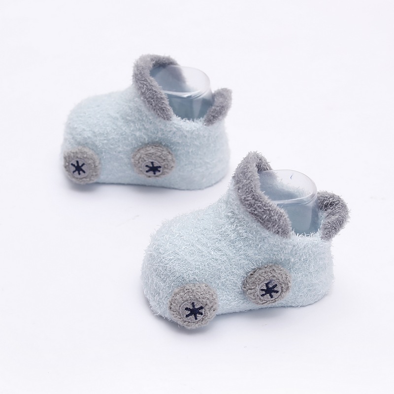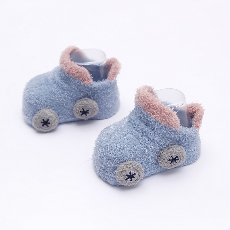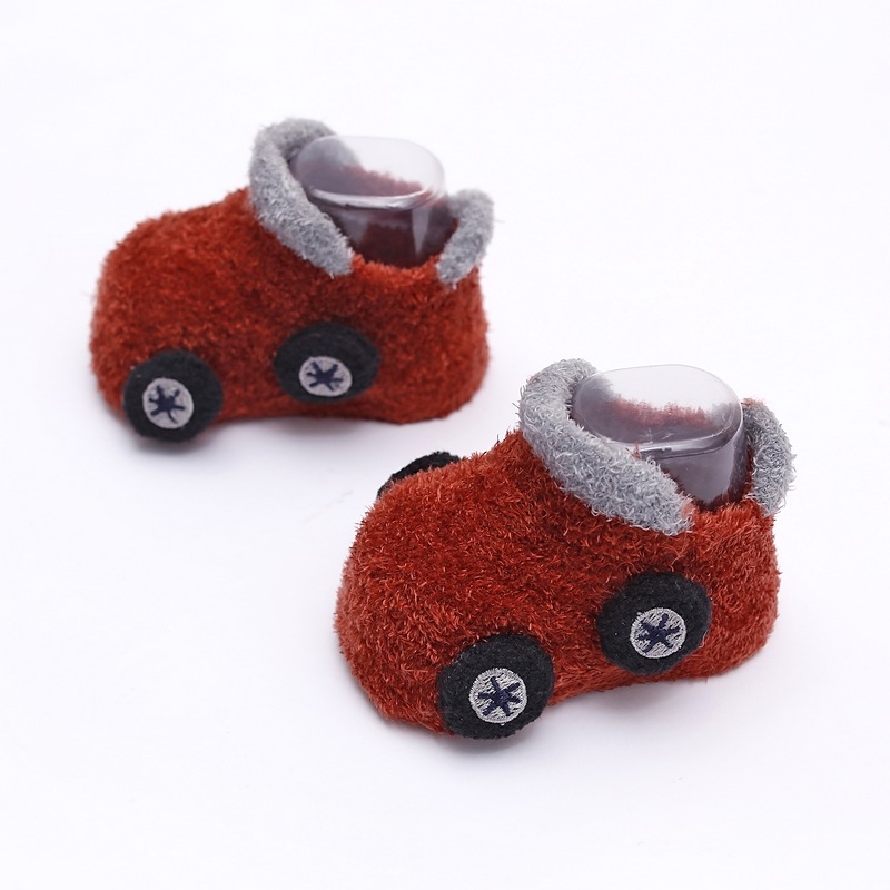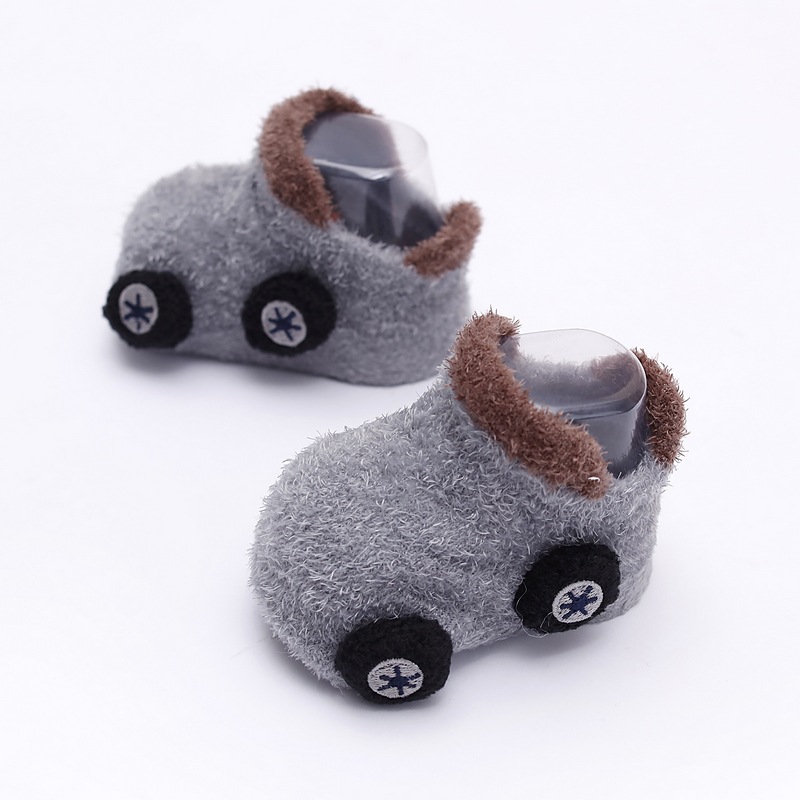 Korean version of autumn and winter coral velvet cartoon children's socks infant children's floor socks feather yarn car
