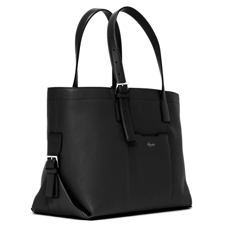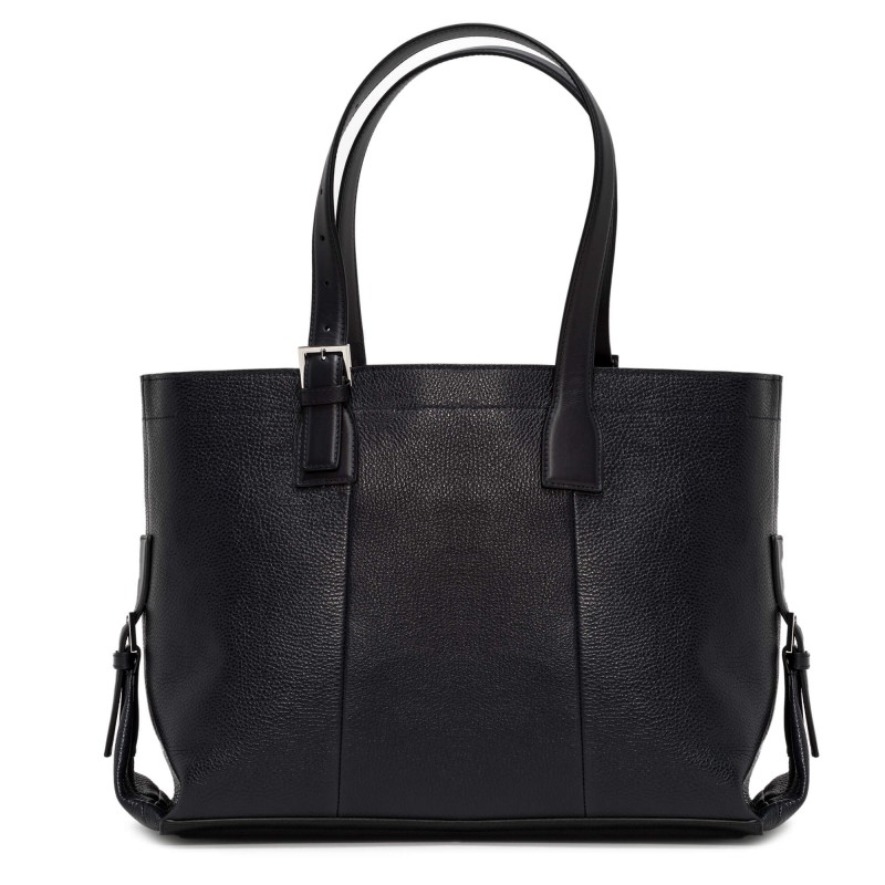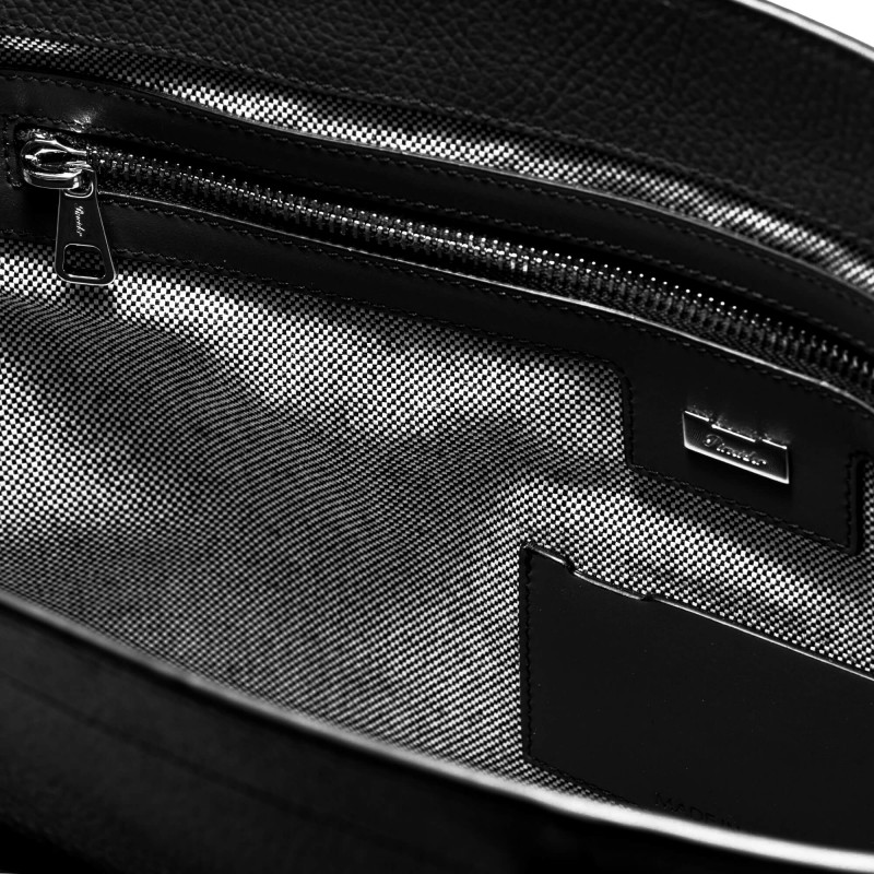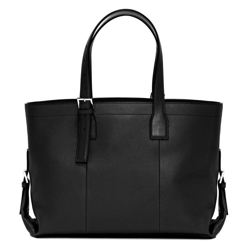 This 2 adjustable handle bag is made of tumbled fine-grained calfskin with 1 compartment with zip opening and adjustable shoulder strap.