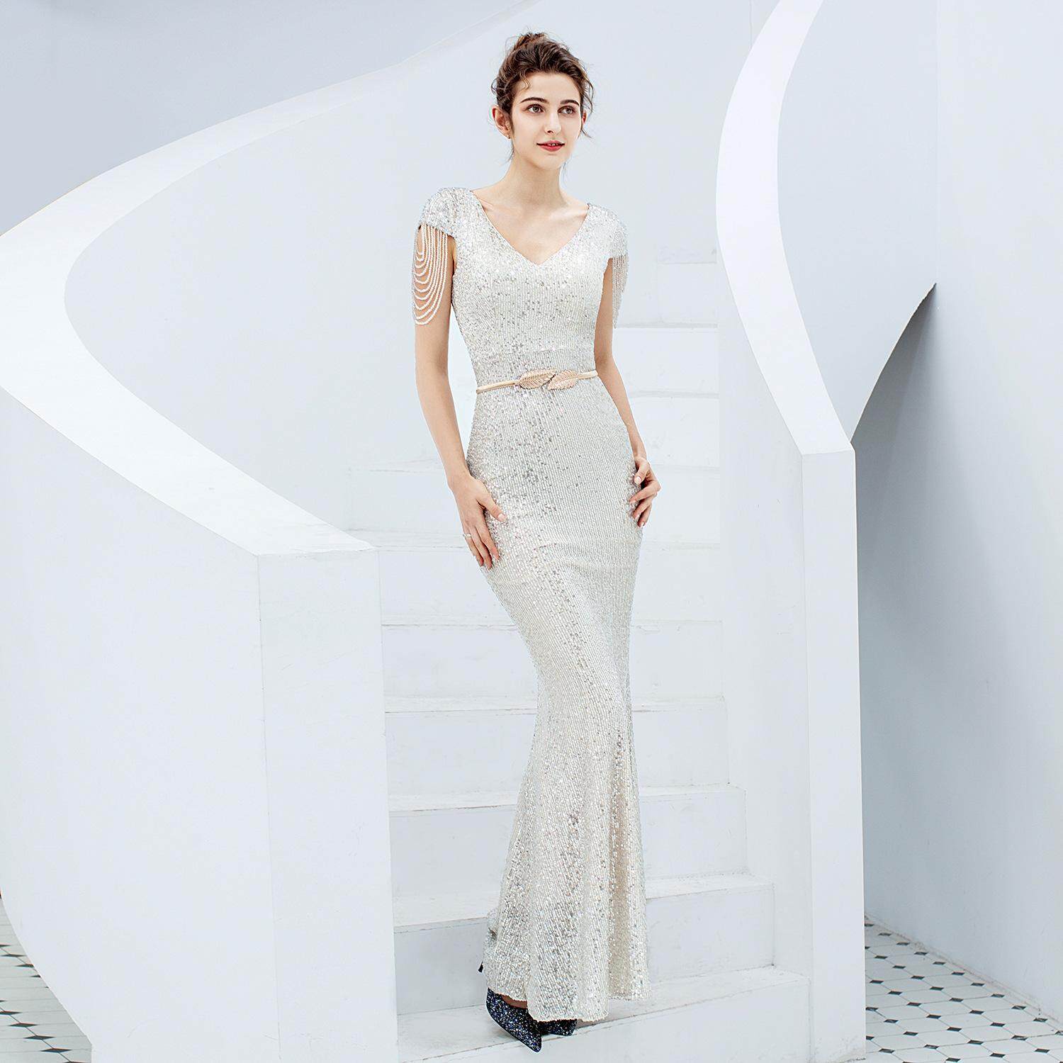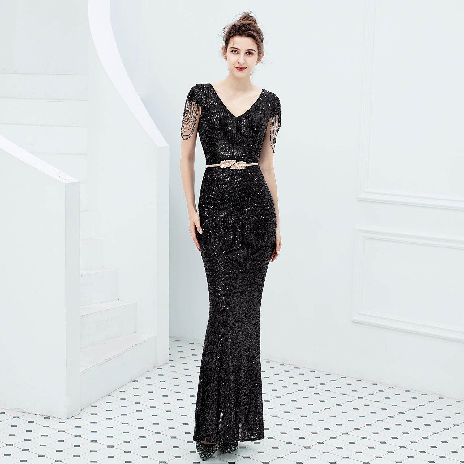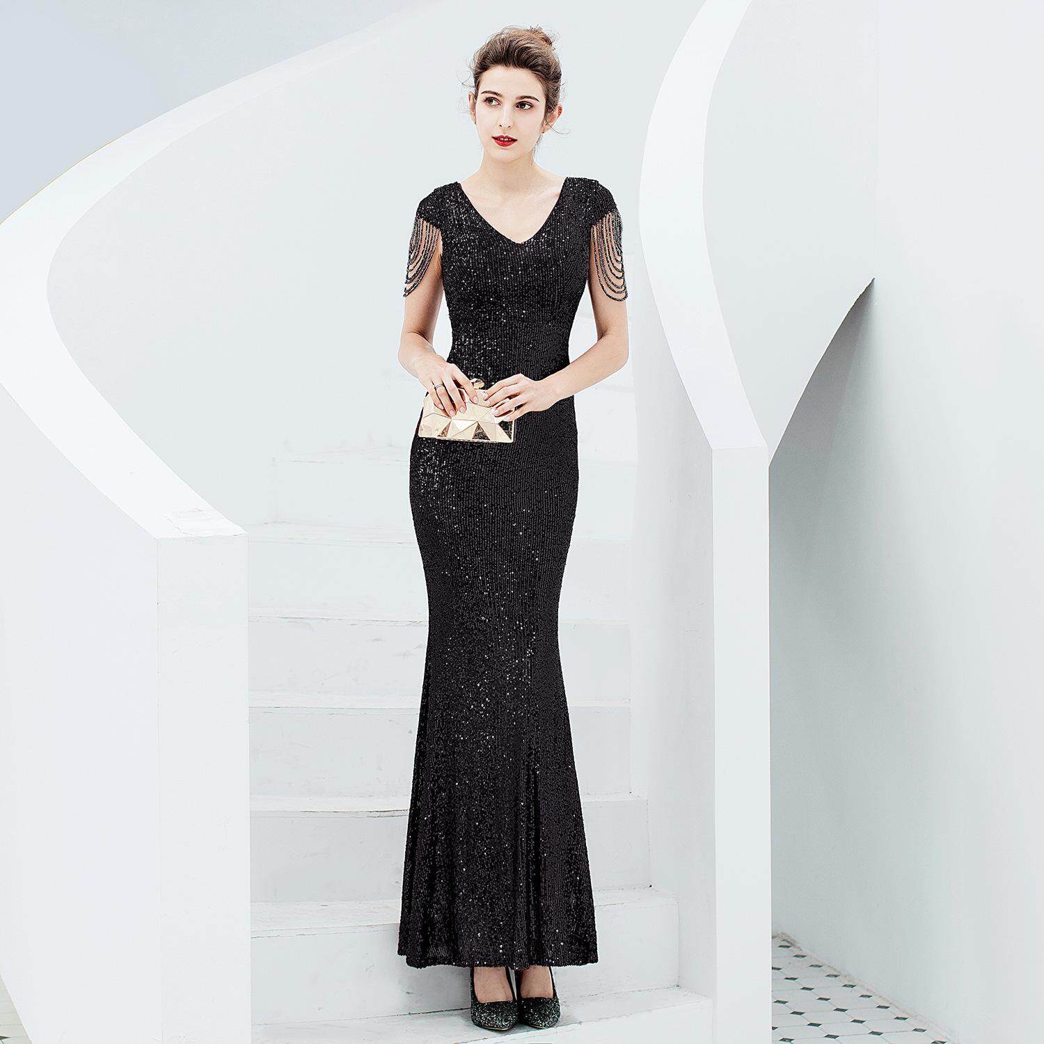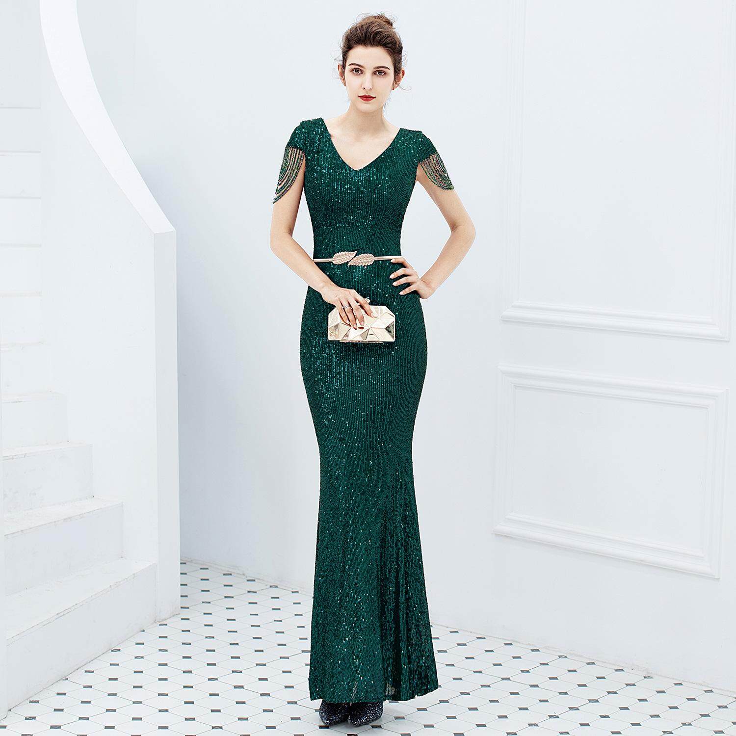 Evening Dress New 2021 Hot Summer Banquet Elegant Fishtail Light Luxury High-End Heavy Work Socialite Host Women