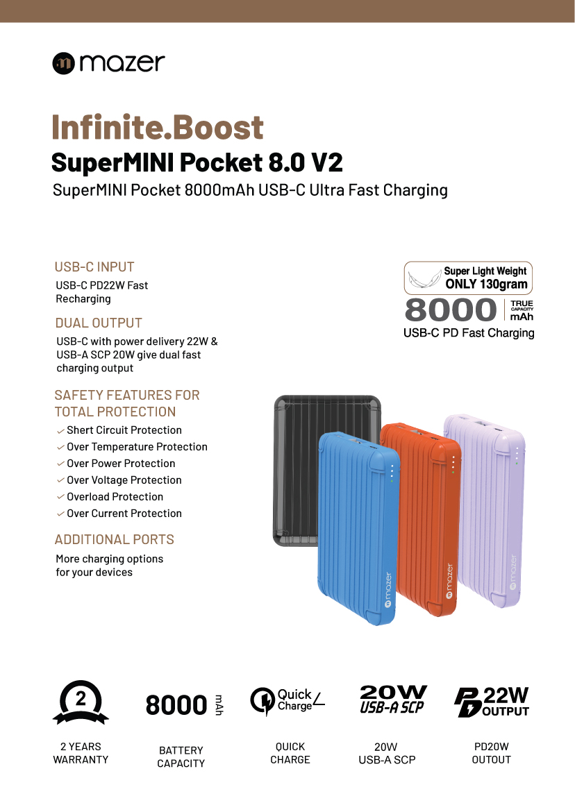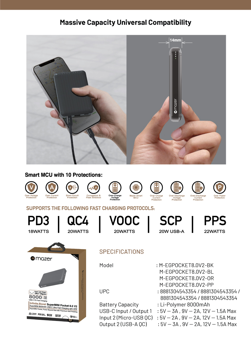 Mazer M-EGPOCKET8.0V2 Infinite.Boost SuperMINI Pocket 8.0 V2 (8000mAh) USB-C Ultra Fast Charging Power Bank