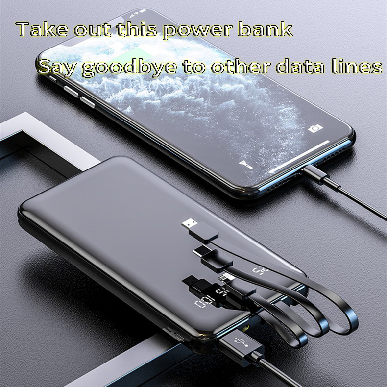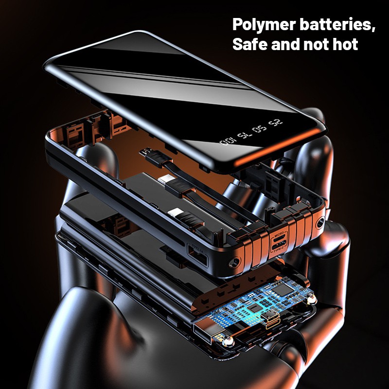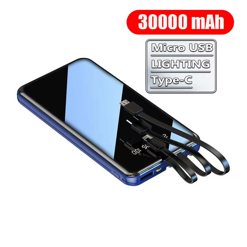 Ready Stock 30000mAh Power Bank Portable Fast Charging Full Screen Built-in 3 Cables Powerbank External Batter