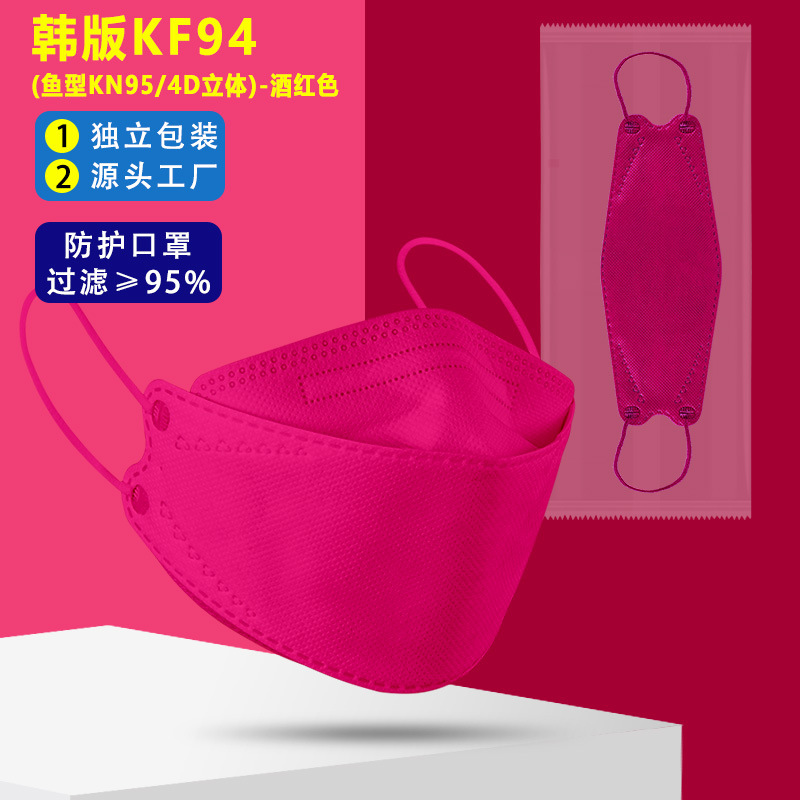 【Individual Packing】50 Pcs KF94 Face Mask for Adult Same Color Stripe Kf94 Korean Style KF94 Facial