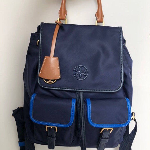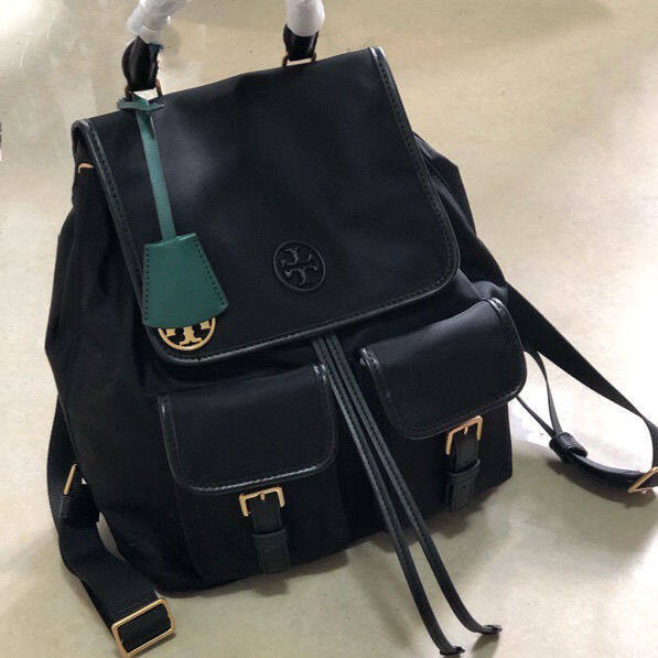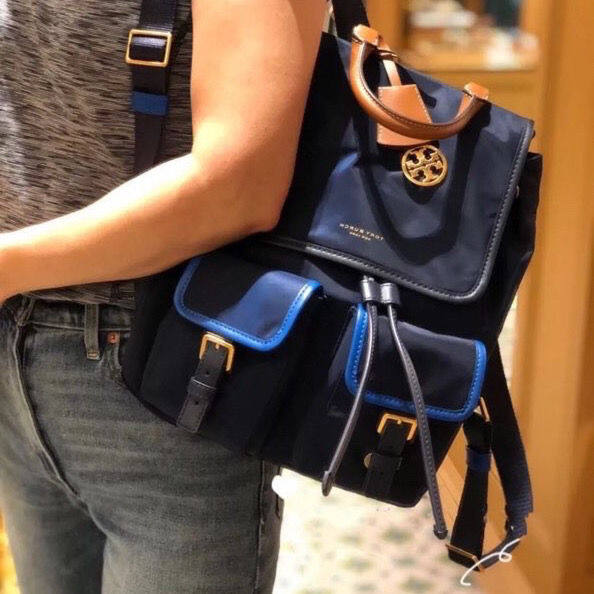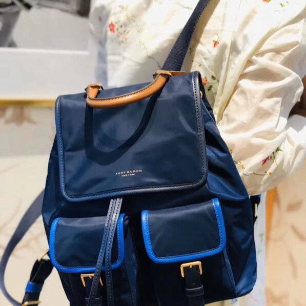 [Authentic] Tory Burch TB Women's Bag Waterproof Nylon with Leather Large Capacity Backpack Lightweight Fashion All-Matc