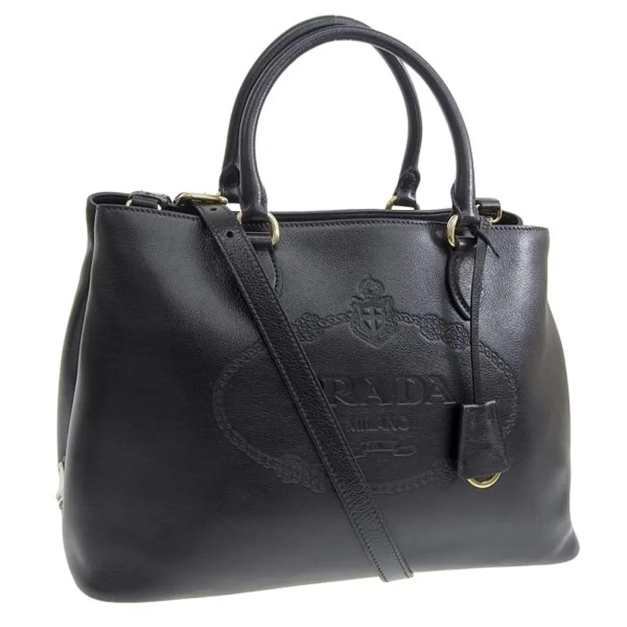 Prada Calf Logo 1ba579 Glacé Calfskin Leather Tote