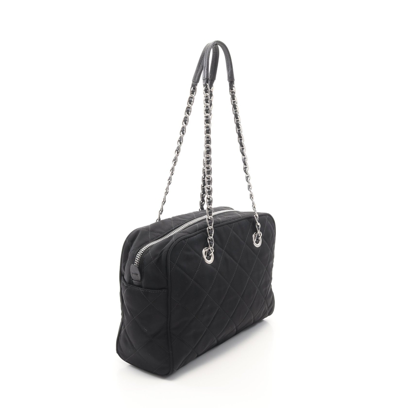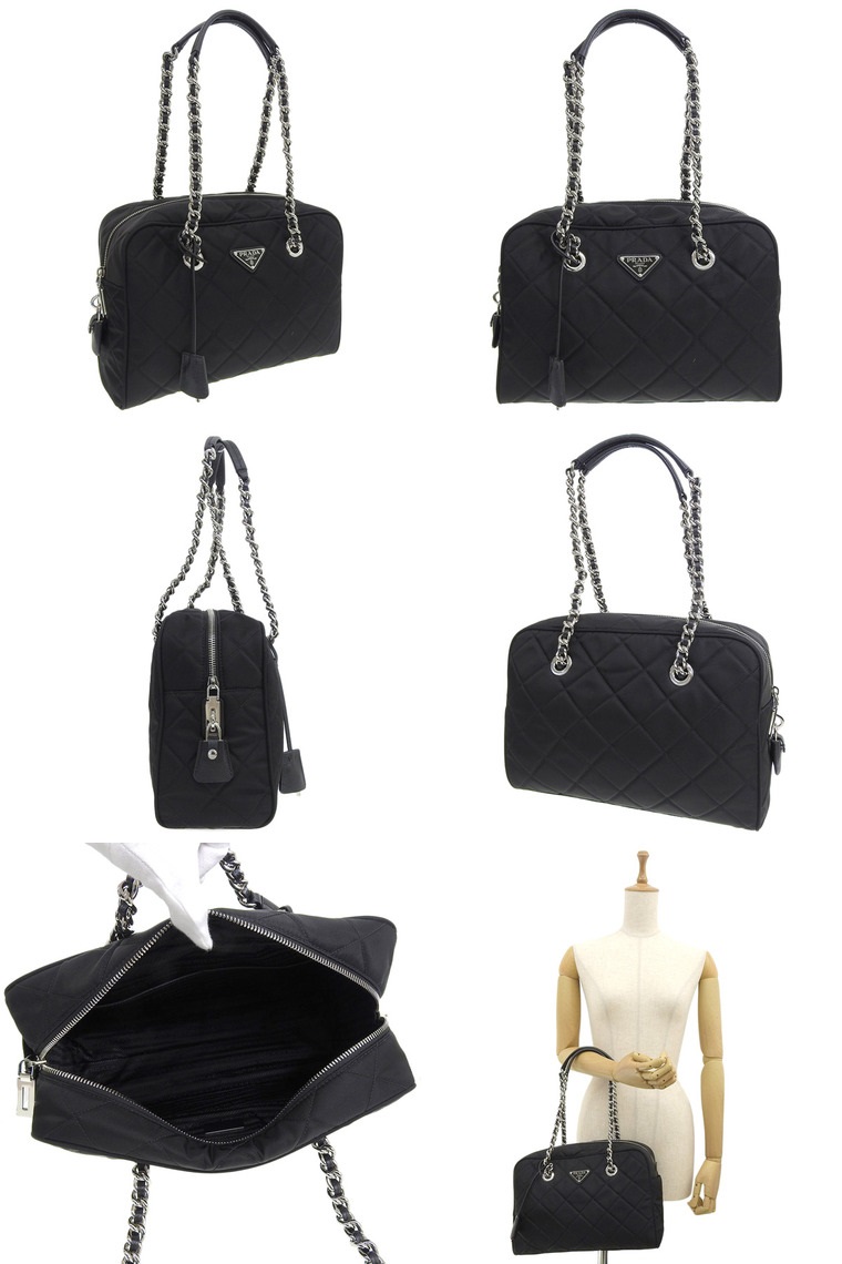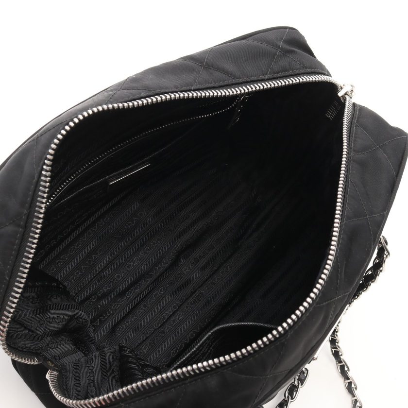 Prada TESSUTO IMPUNTU Chain Shoulder Bag Nylon Saffiano Leather Black 1BB903