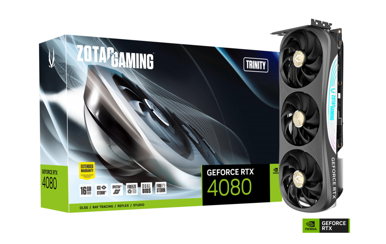 ZOTAC Trinity Non-OC/OC GeForce RTX 4080 RTX4080 16GB GDDR6X PCI Express 4.0 Gaming Graphic Card (ZT-D40810J-10P)(ZT-D40810D-10P)