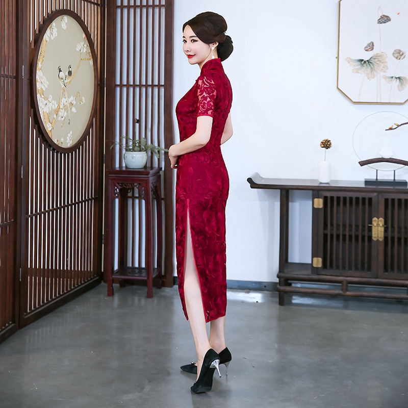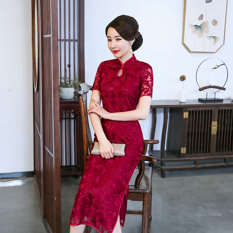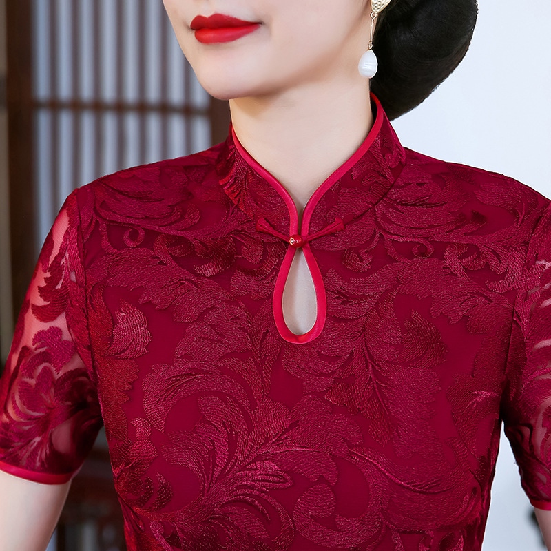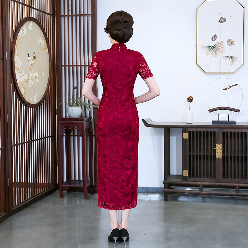 ♝ Long lace cheongsam dress slim and slim improved version of Chinese wedding wedding feast mother's dress happy mother-in-law 1942