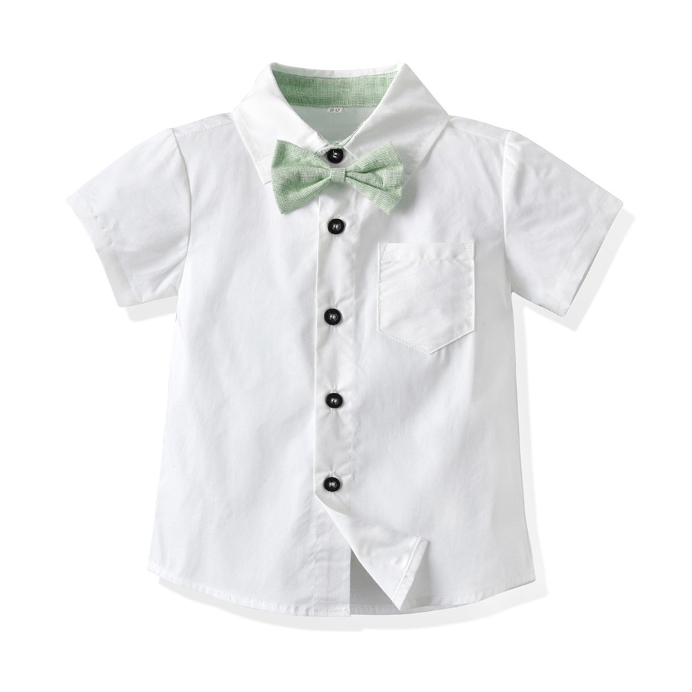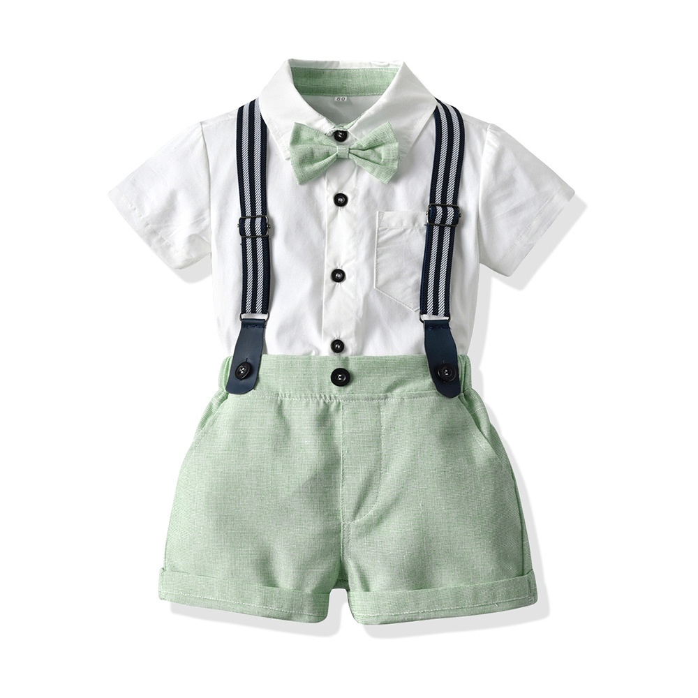 MUGE [2022 New Style] 1-6 Years Old/Boys Summer Suit/Children Short-Sleeved White Shirt/Green Overalls Shorts/Birthday Party Dress/kaile Children's Clothing