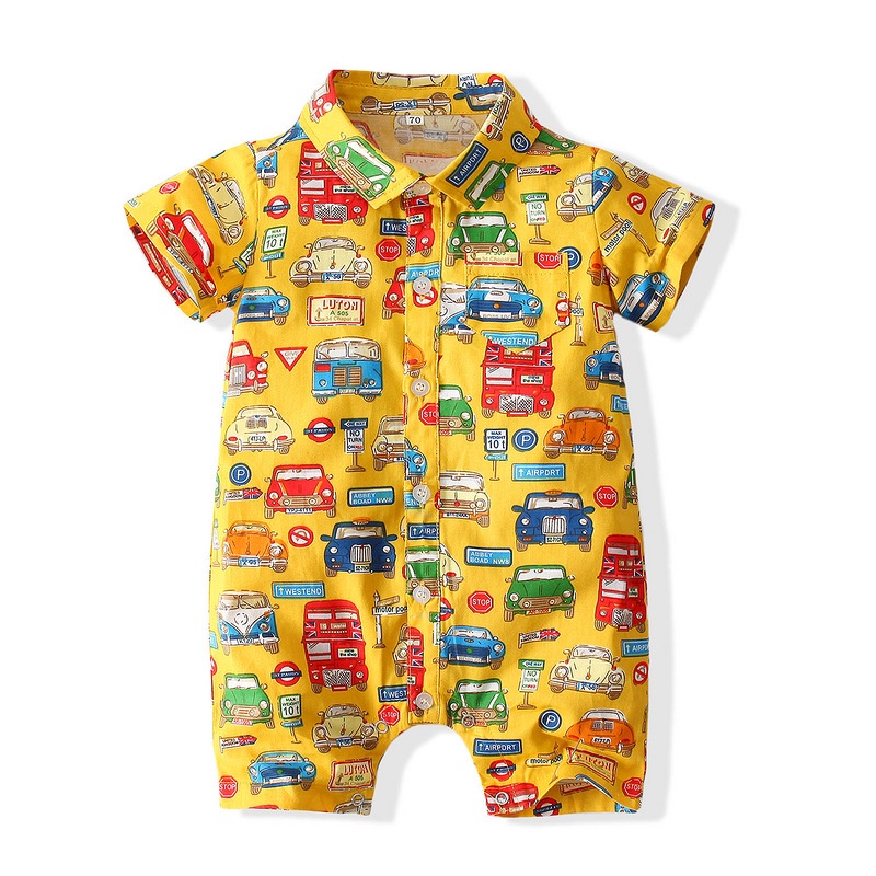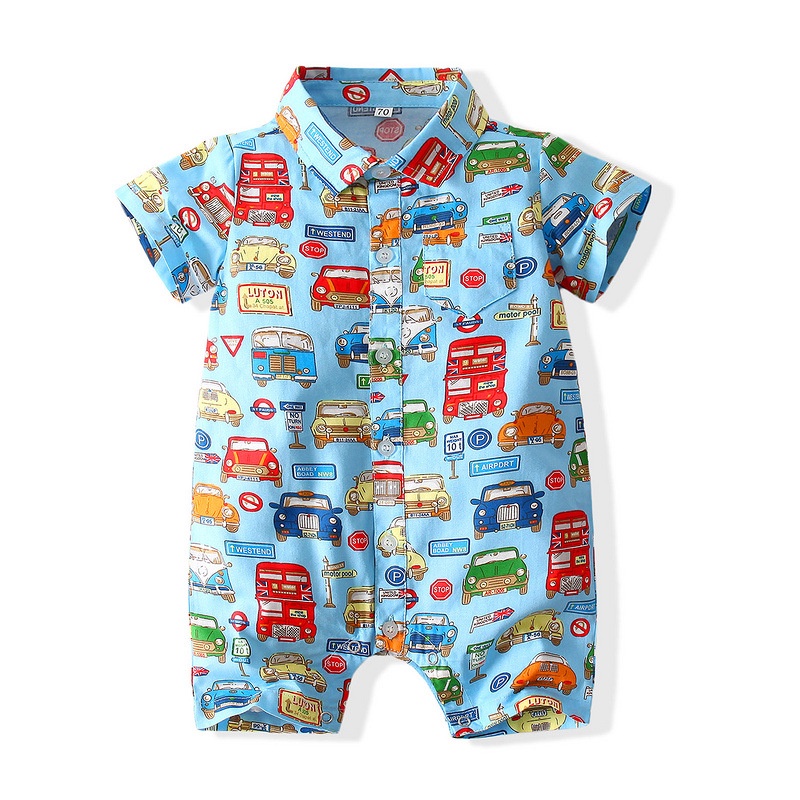 MUGE [2022 New Style] 0-3 Years Old/Crazy Car City Children's Romper/Boy One-Piece Homewear/Cartoon Jumpsuit/Baby Baptist/Birthday Party Dress Suit/kaile Clothing