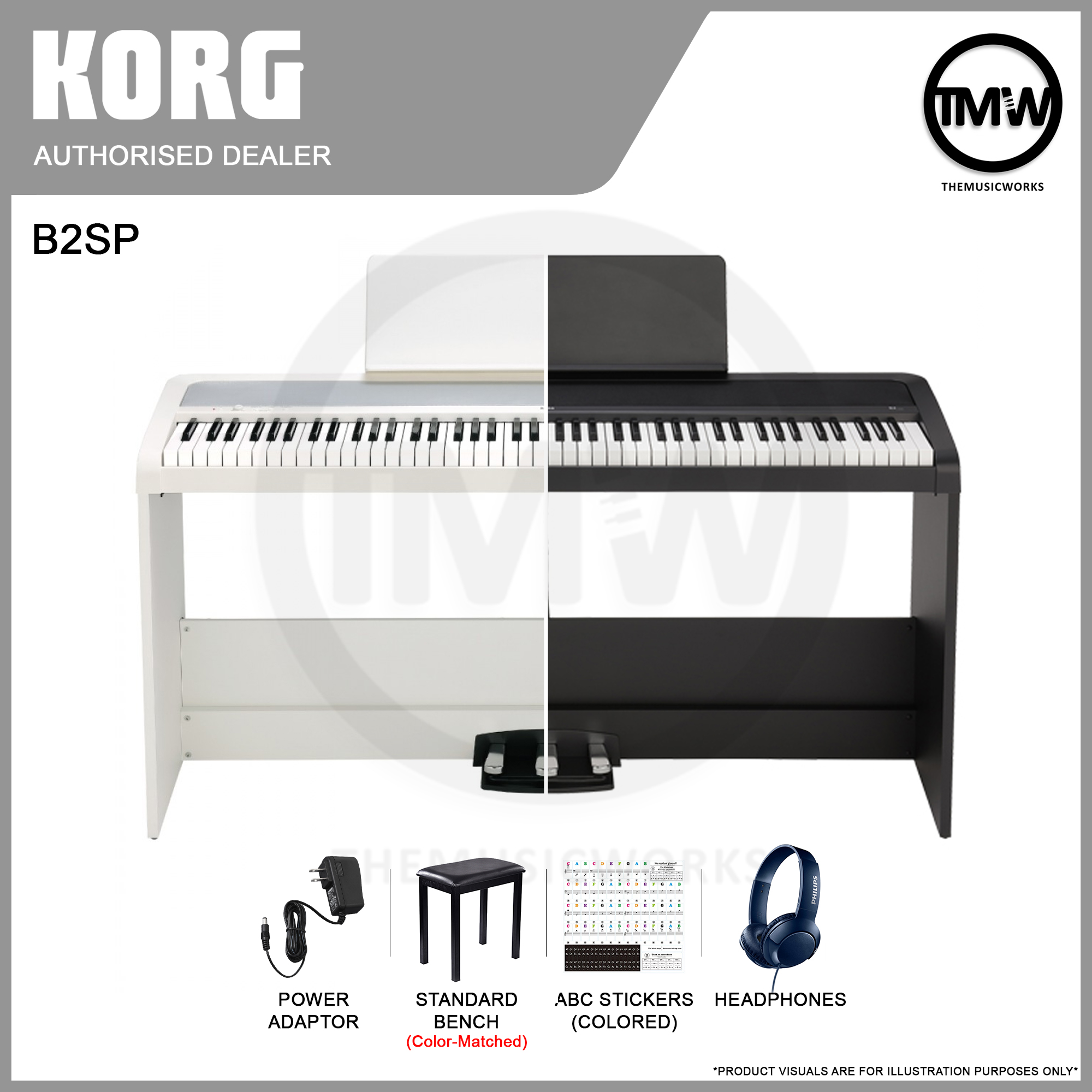 [PRE-ORDER] KORG B2SP (Black/White) Digital Portable Electronic Piano Keyboard 88 Keys Natural Weighted Hammer - Adaptor Standard Bench ABC Stickers Headphones - Absolute The Music Works Store (C1 23.