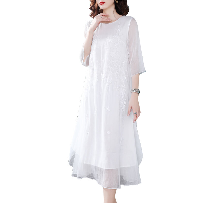 Long Skirts Skirt Chinese Clothing Female Elegant Chinese Style Chinese-style Chinese Style MIMZF Slimming Chinese Clothing White Cheongsam Modified Dress