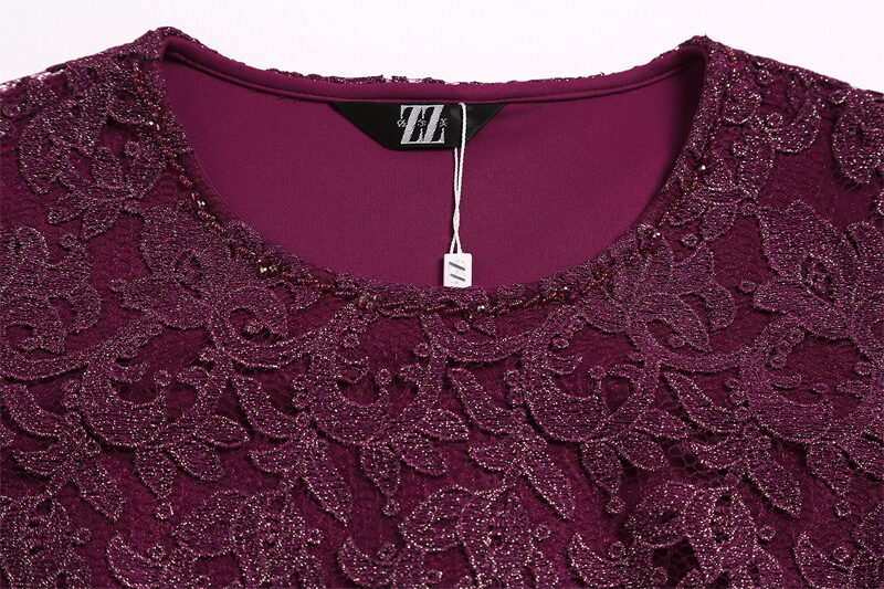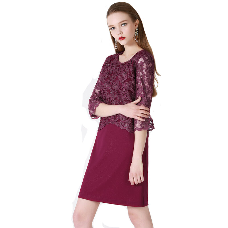 Zormei New Spring and Autumn Women's Clothing Solid Color Lace Printing Slim Fit Slimming Stitching Half Sleeve Dress E71ll26
