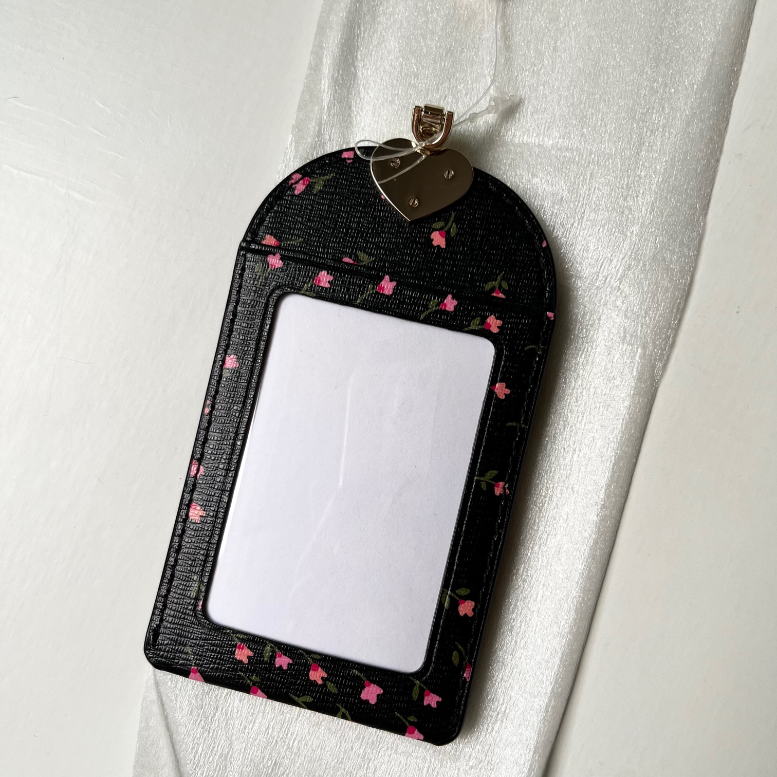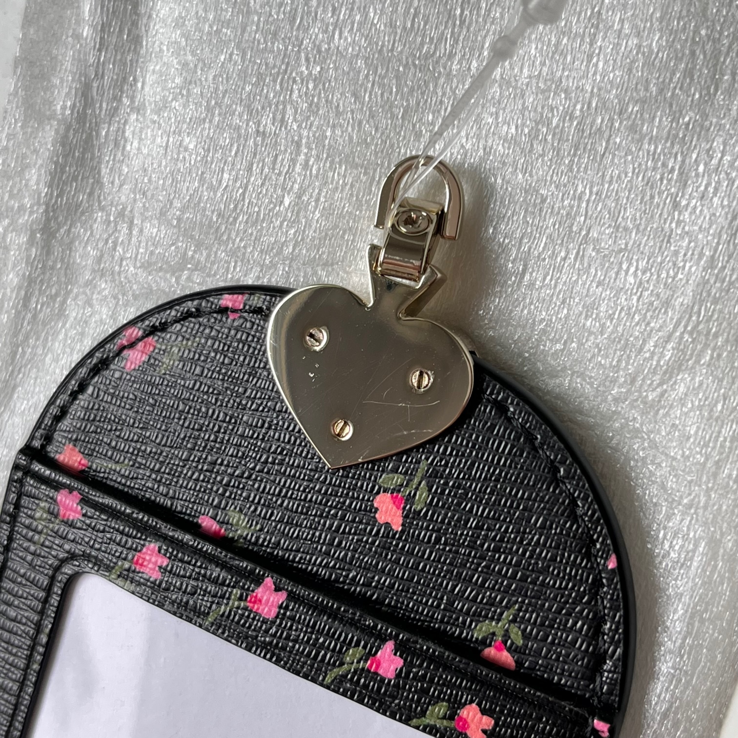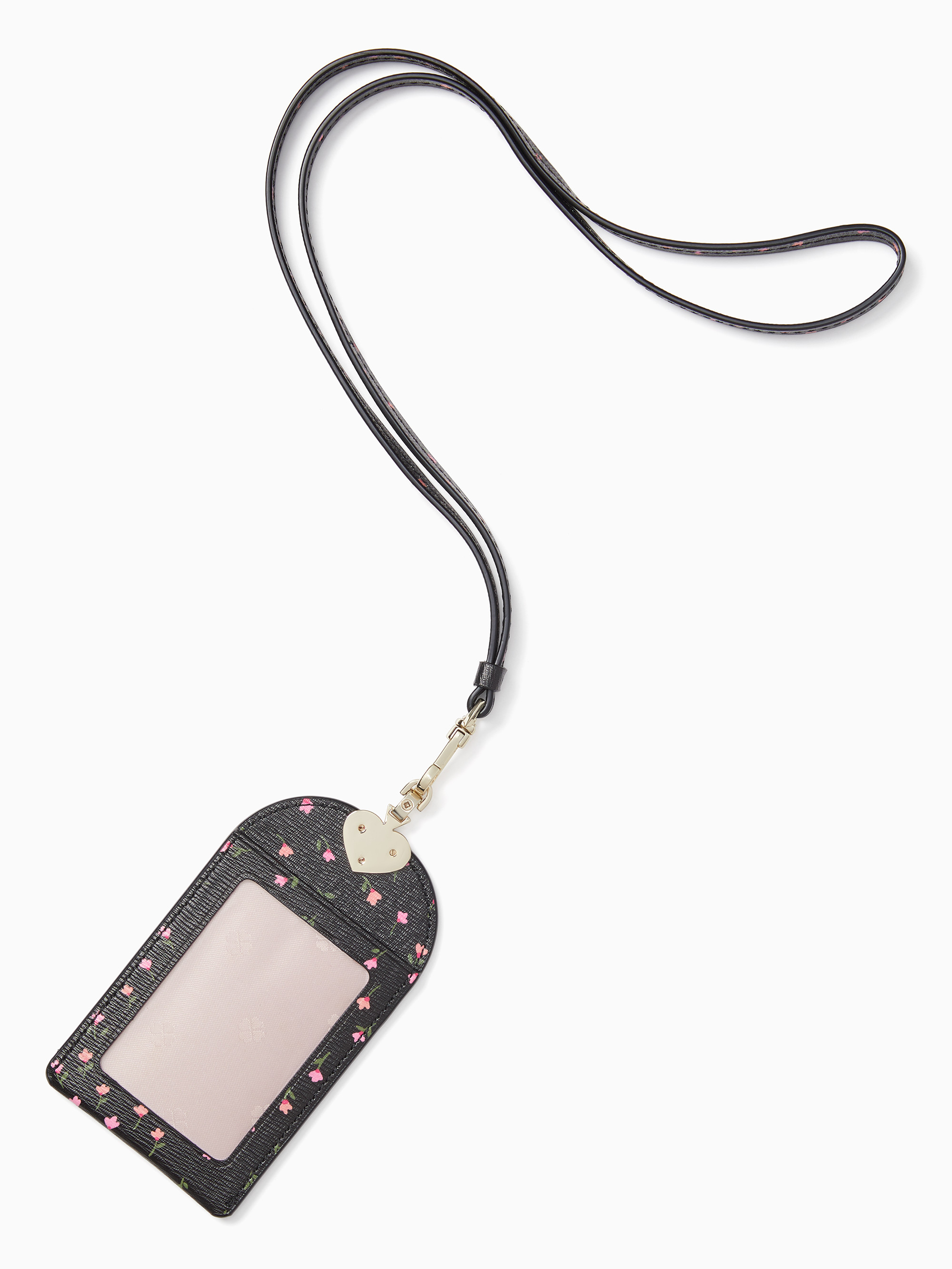 If you have to wear a lanyard, at least wear one that's made from luxurious crossgrain leather and has chic domed pockets to hold all of your can't-lose cards. We added an upside down enamel spade that looks like a heart to make it even prettier.