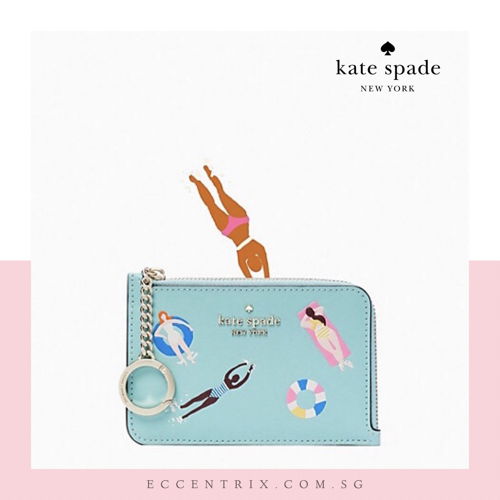 here's a place to stash concert tickets, keys, and secret love notes...oh, and credit cards of course. its pockets keep your cards and cash organized, and the key ring is handy for accessorizing or keeping your keys close to hand.