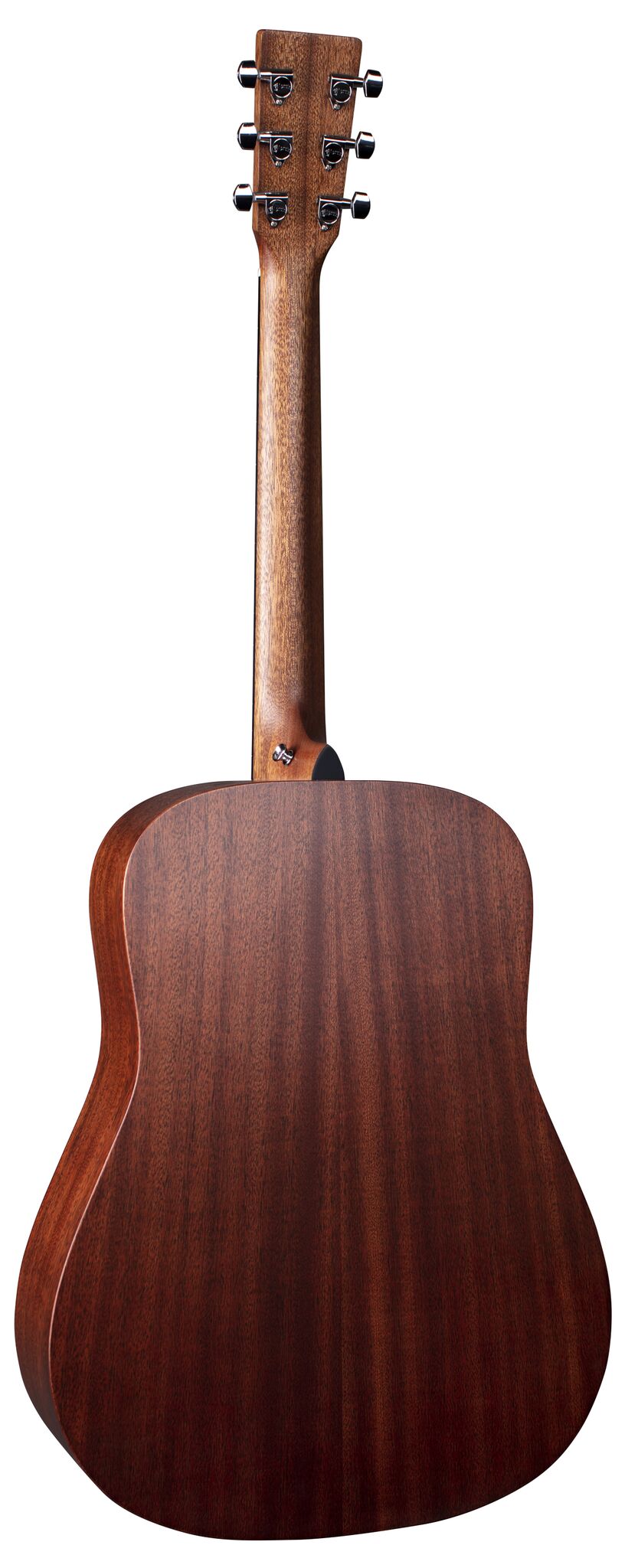 With sapele top, back and sides, this solid wood Dreadnought model is a great sounding guitar at an affordable price. New to this model are stunning mother-of-pearl pattern fingerboard inlays with a multi-stripe rosette border. It has an FSC® Certified Richlite® fingerboard and bridge, satin finish body, and a hand-rubbed neck finish. Also new to this model is the Fishman® MX-T electronics package with a built-in soundhole tuner that auto mutes the audio output so you can tune up any time without using a pedal. This guitar comes with a Premium Soft Shell Case so it is Road-ready to join you on all of your adventures!